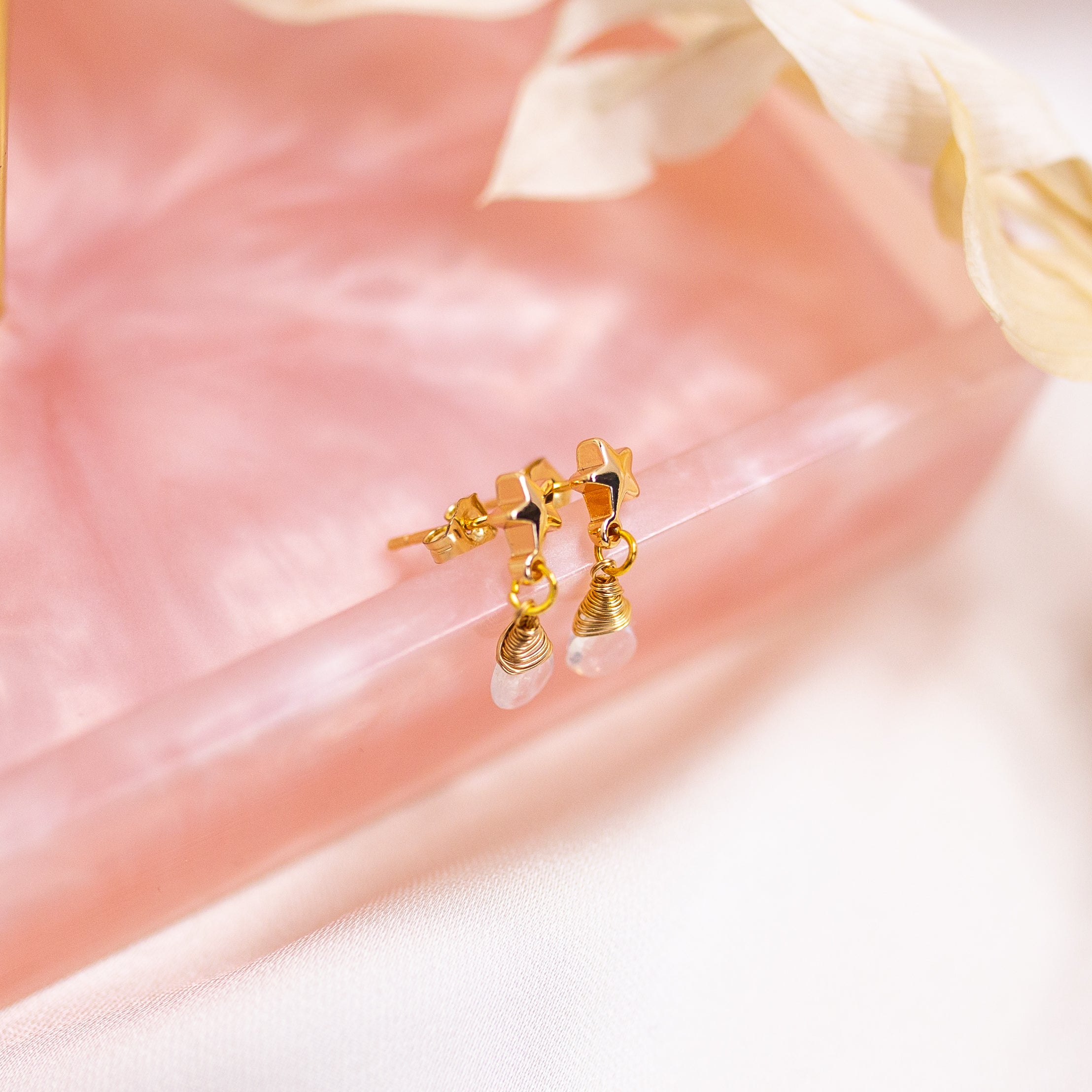 The 444 Moonstone celestial studs are perfect for layering or as a simple dainty piece.
