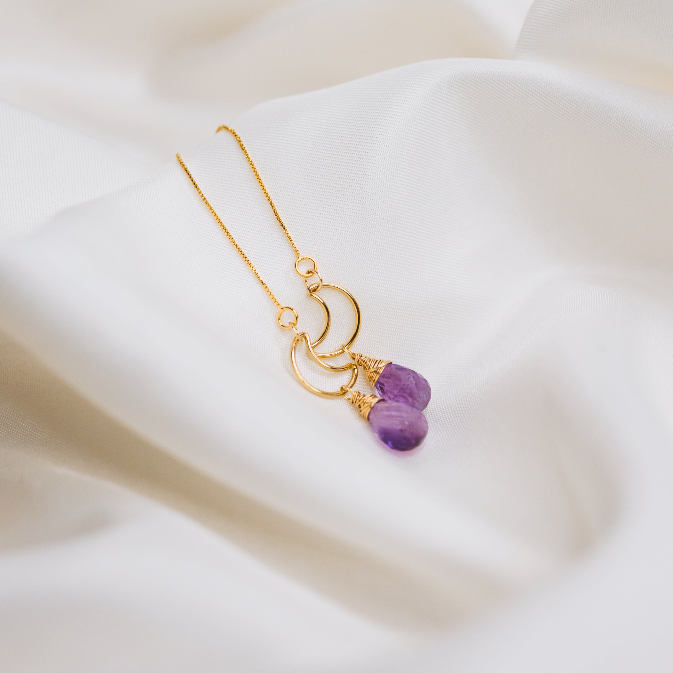Amethyst golden crescent moon threaders.