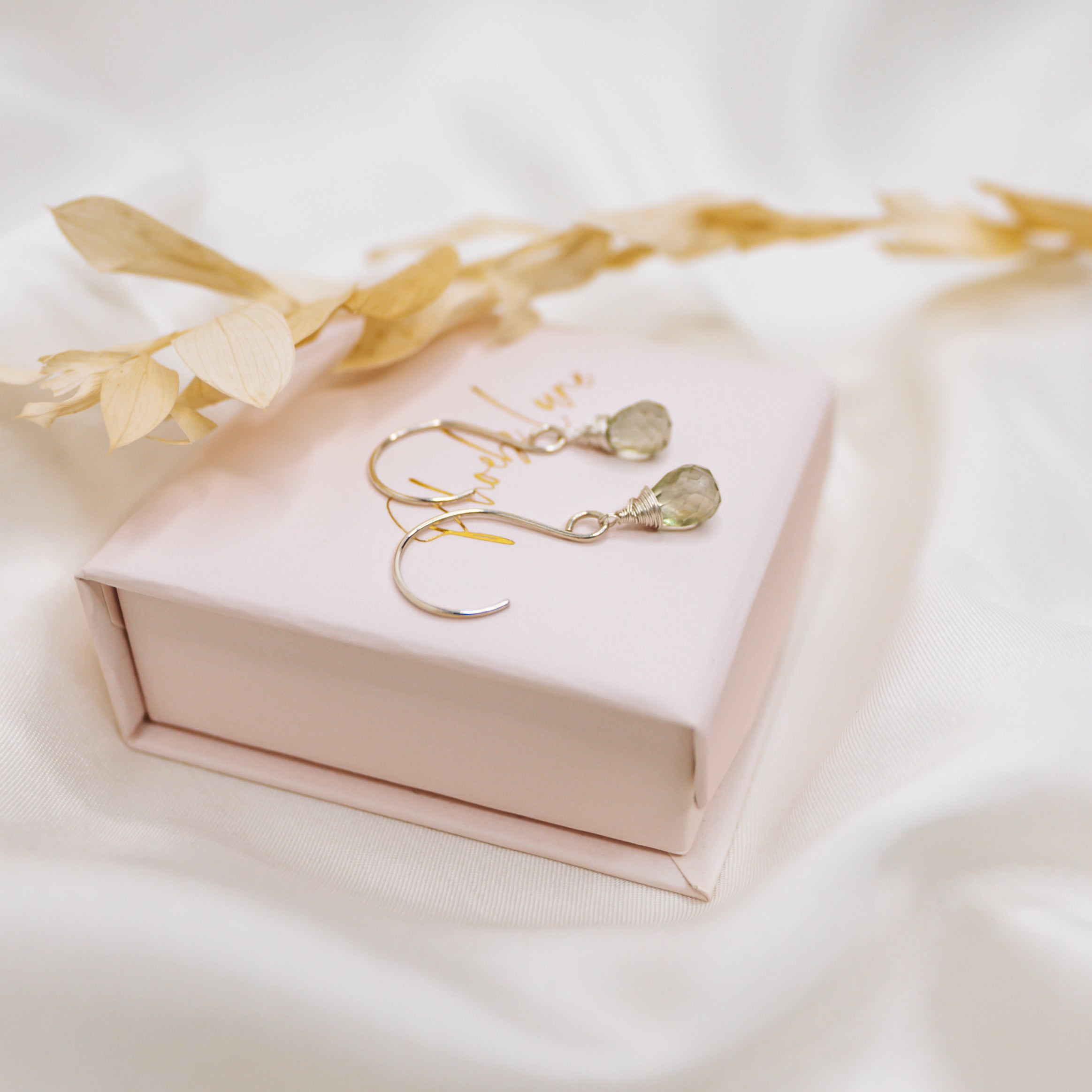 The classic Lilibet hooks in sterling silver with ethically sourced, hand cut Green Amethyst.