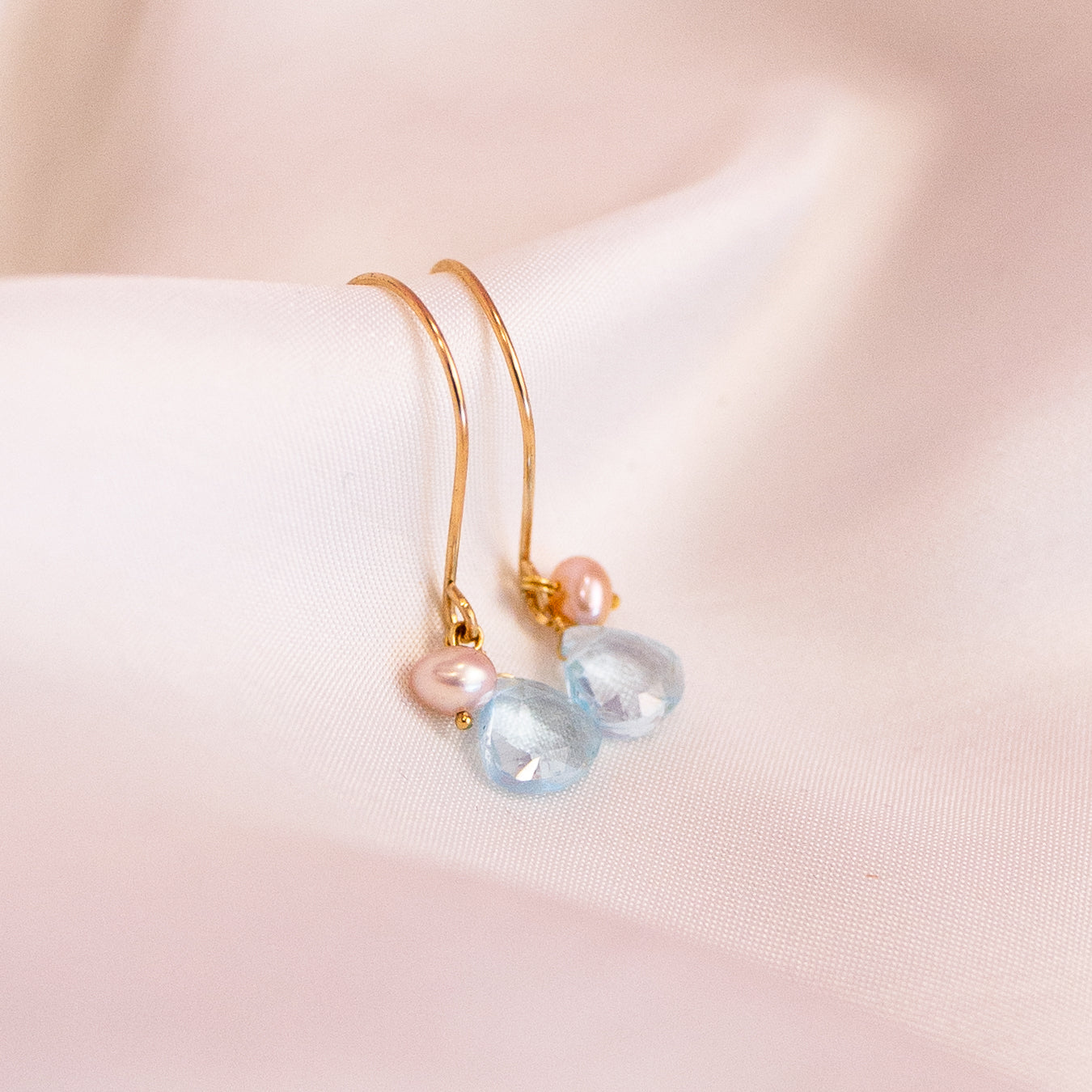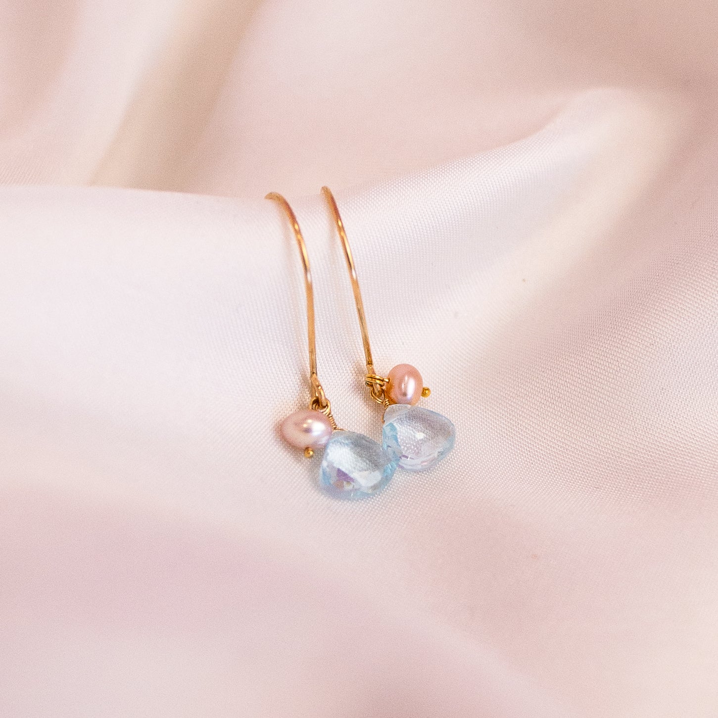 Aquamarine and Pink Pearl Gold Filled Lilibet Hooks