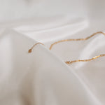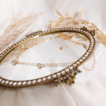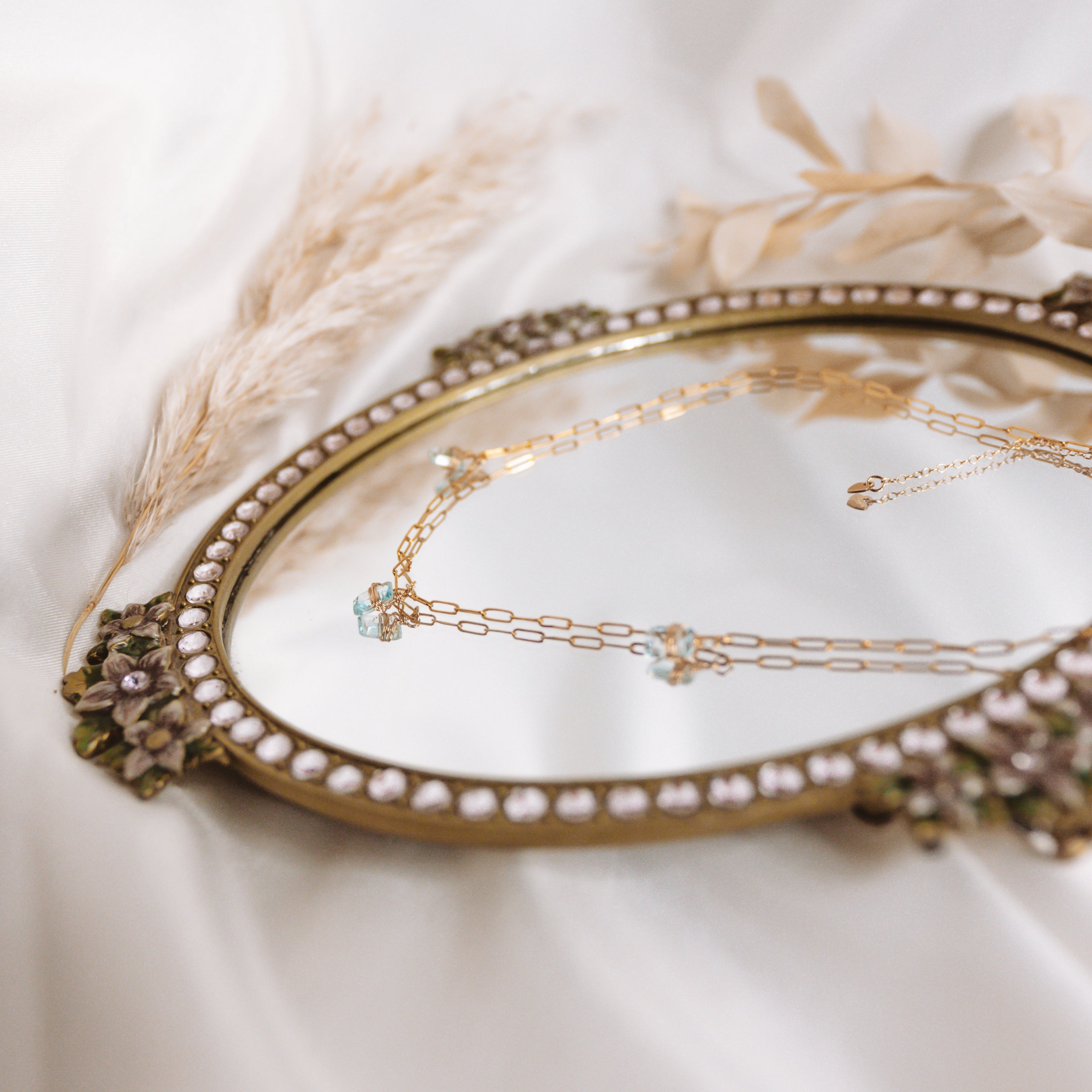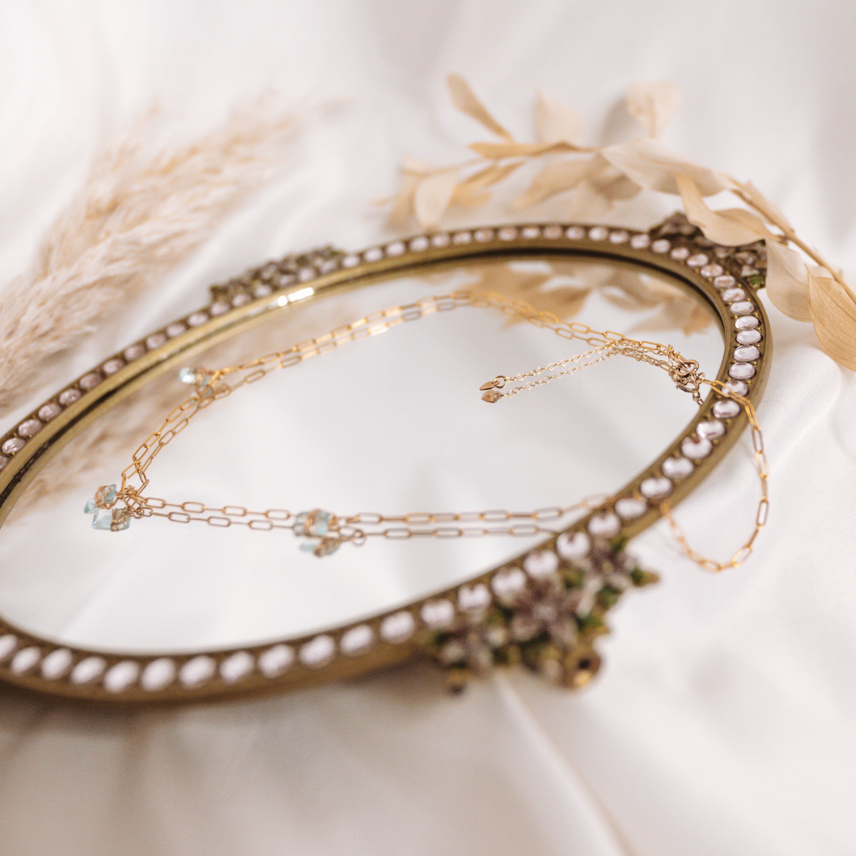 Dusted with hand wrapped baby blue Aquamarine, pair the link chain necklace with the Aquamarine gold filled Lilibet hooks for an elegant, timeless set.