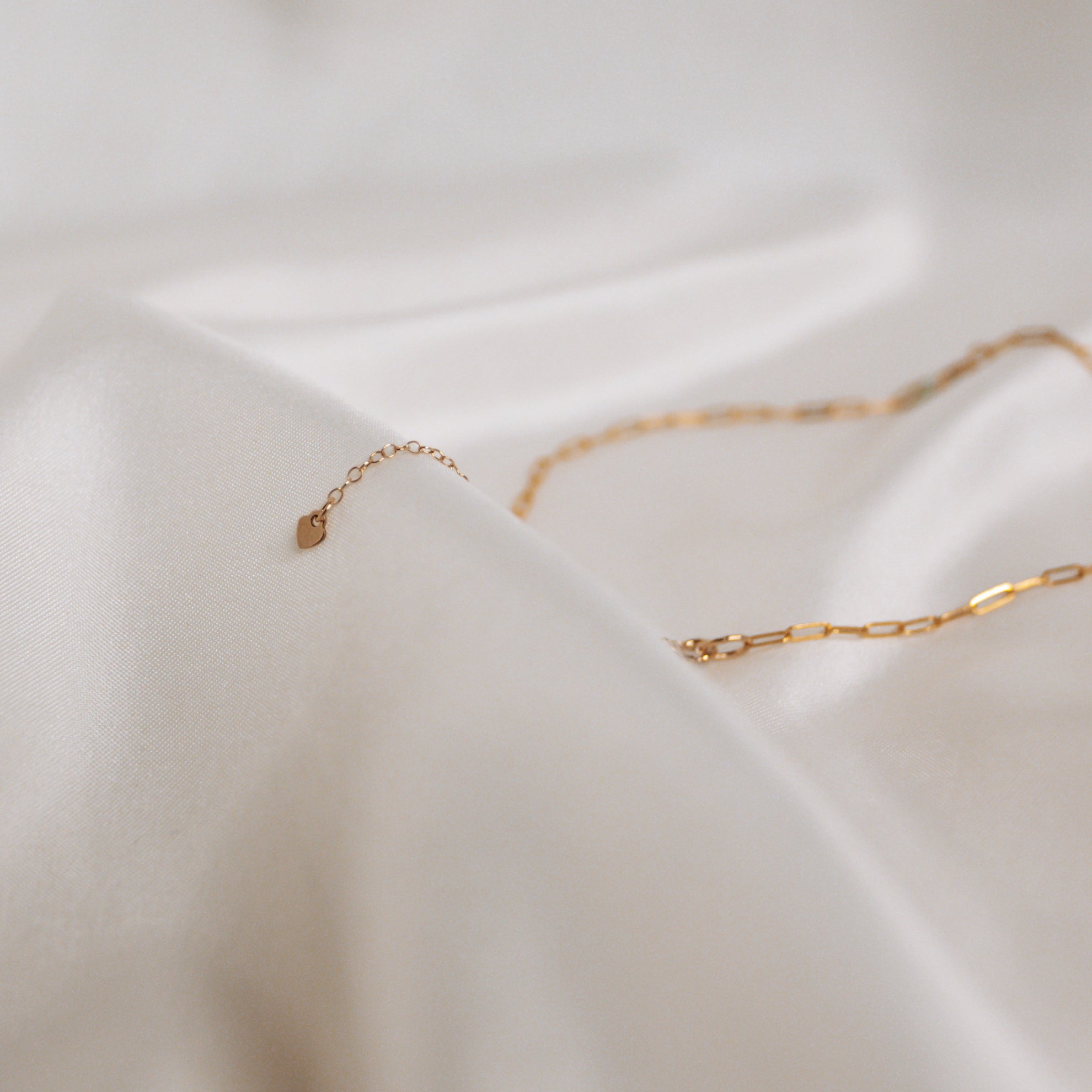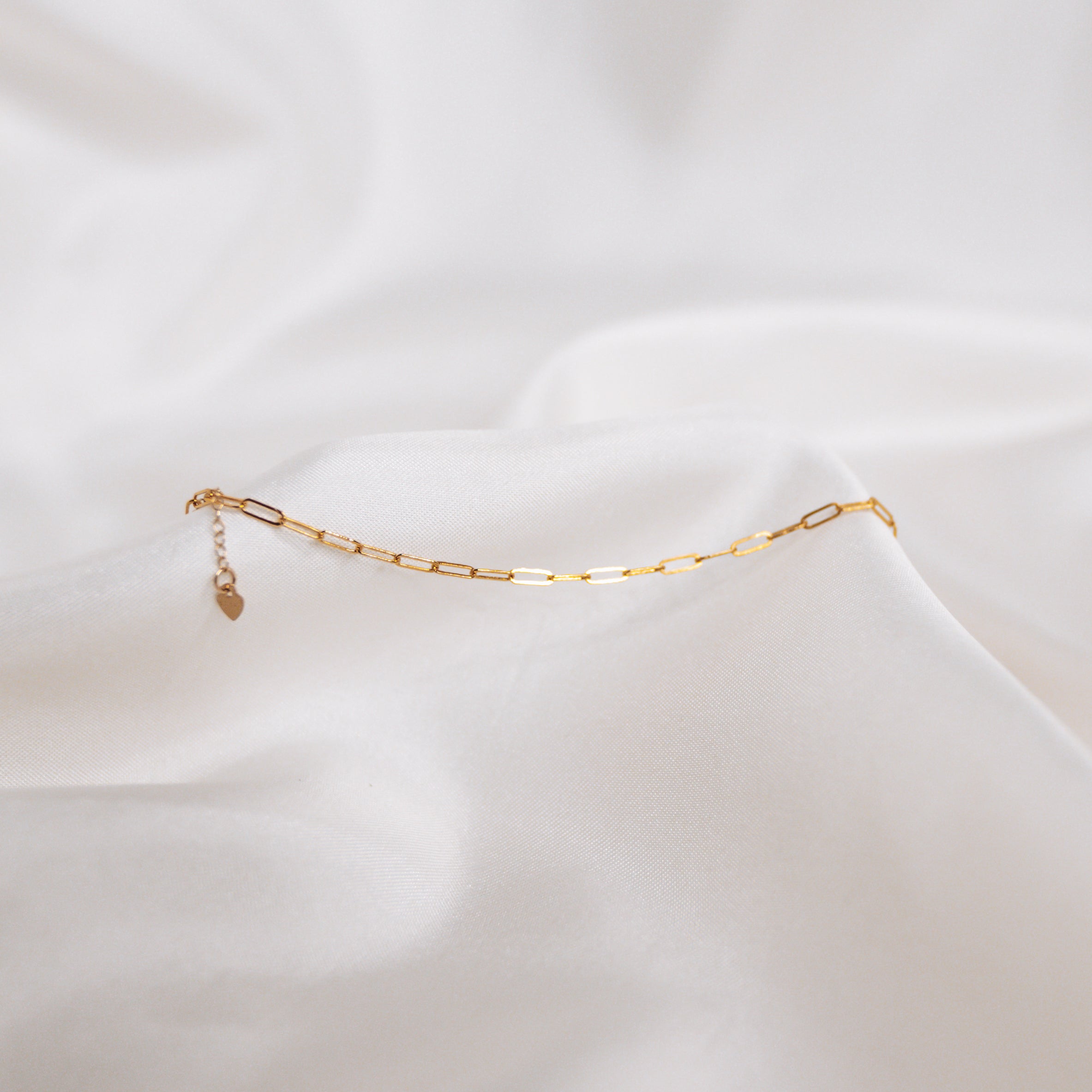 Designed to sit along the collarbone, the gold filled chain link necklace measures 14" - 16" with the extender cable and is finished with a mini gold filled heart.
