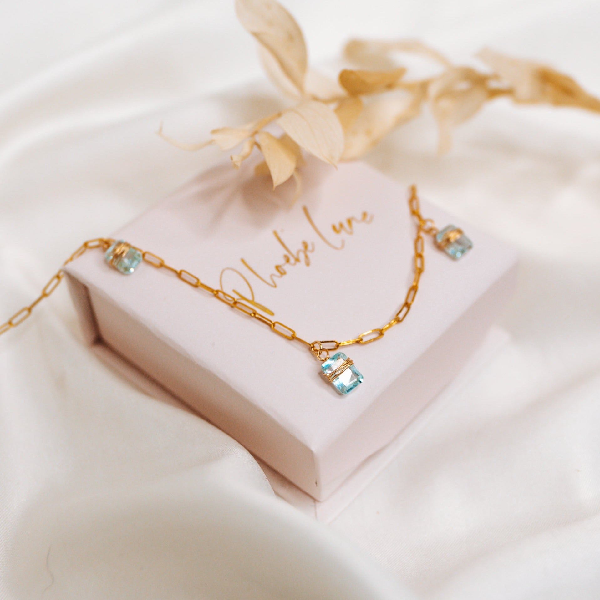 All pieces arrive in a Phoebe Lune jewellery box/pouch, safely secured by our baby pink tissue paper and dusted with rose, cornflour and lavender petals.