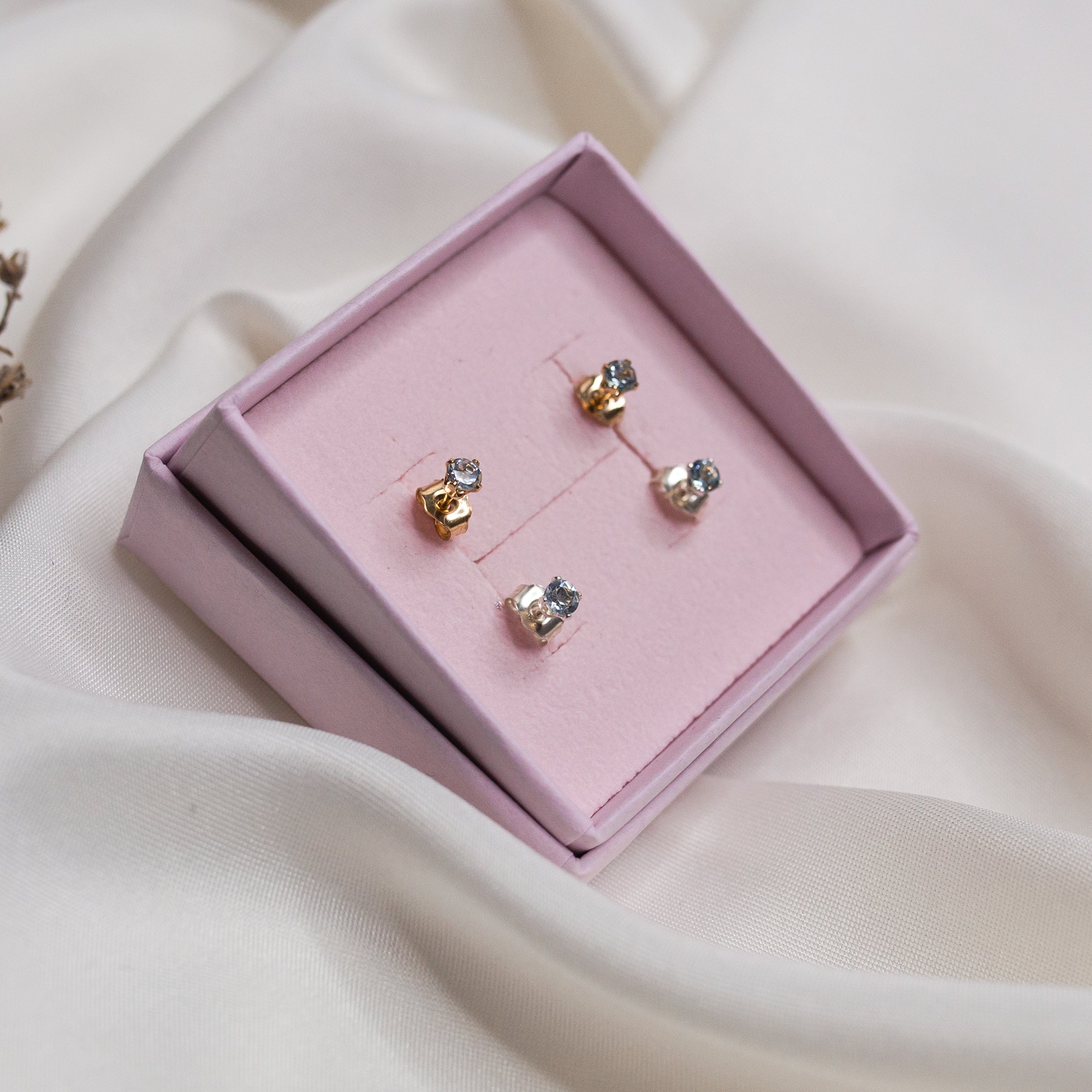 Available in Gold Filled or Sterling Silver studs making them suitable for sensitive ears. All pieces arrive safely secured in a Phoebe Lune jewellery box.