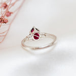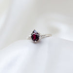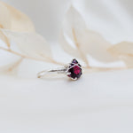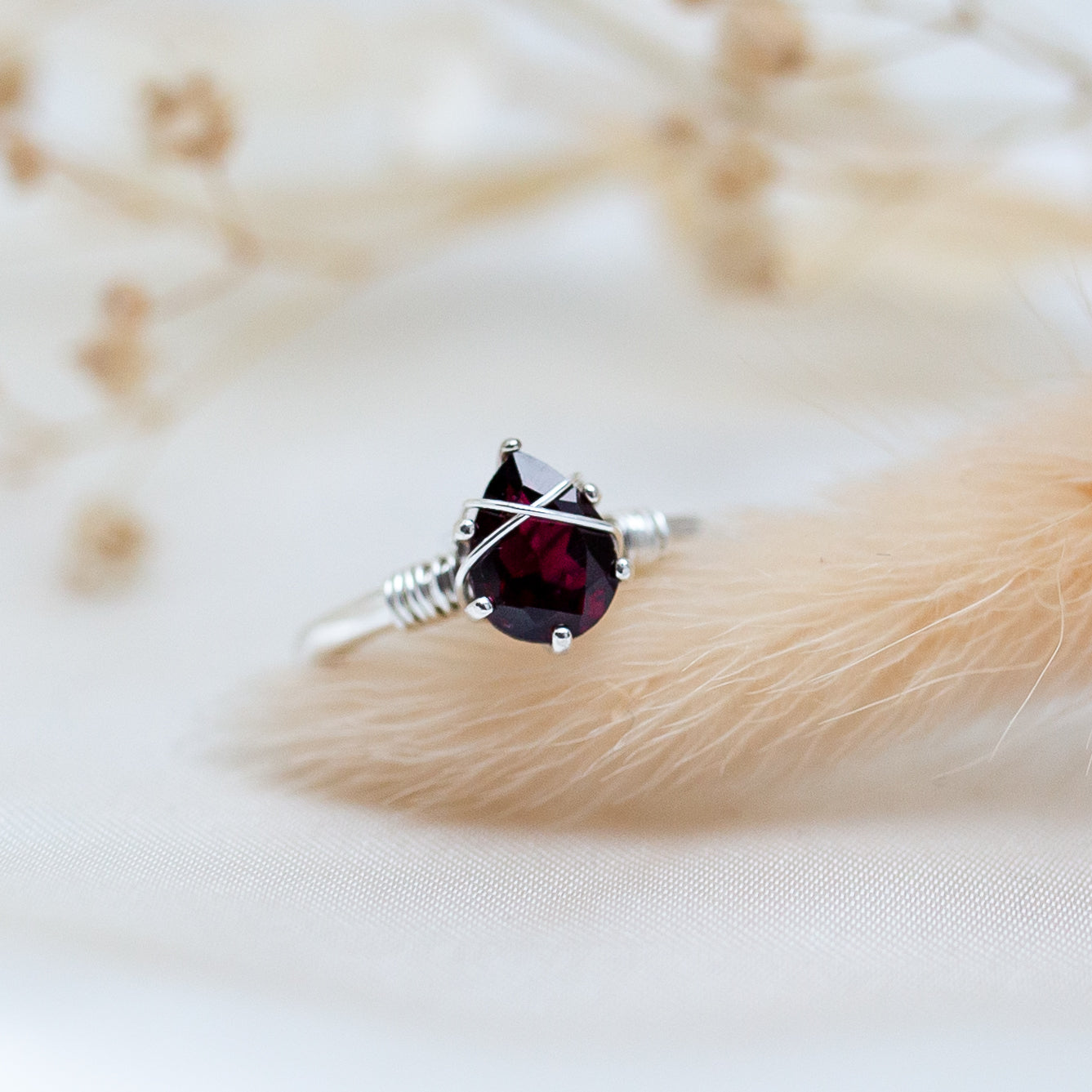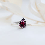 This deep red Garnet teardrop gemstone has been hand set in a sterling silver ring and wrapped in sterling silver wire. This elven jewel is graceful and strong, with Garnet being a spiritual stone of higher thinking and self-empowerment, it is also a stone of strength and safety.
