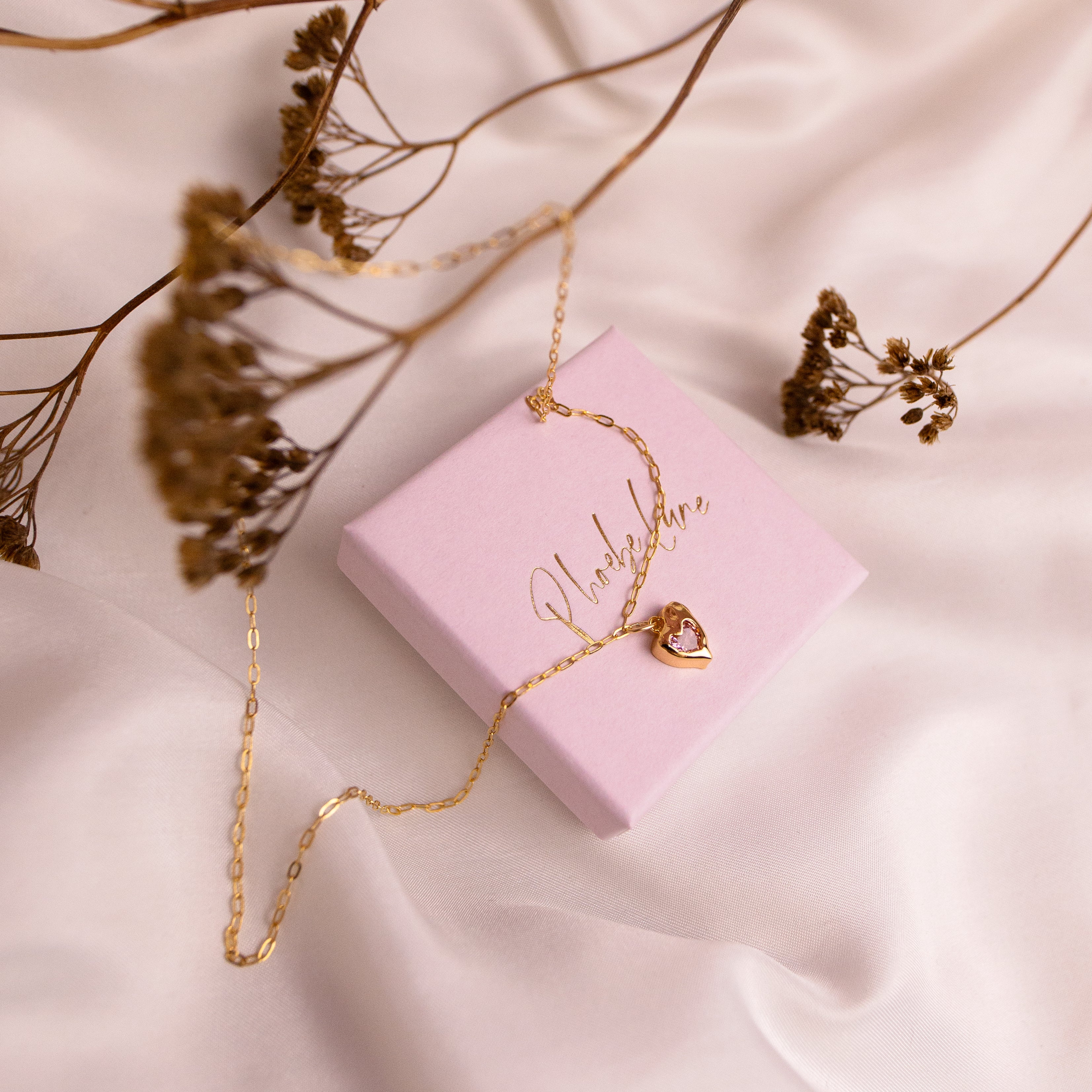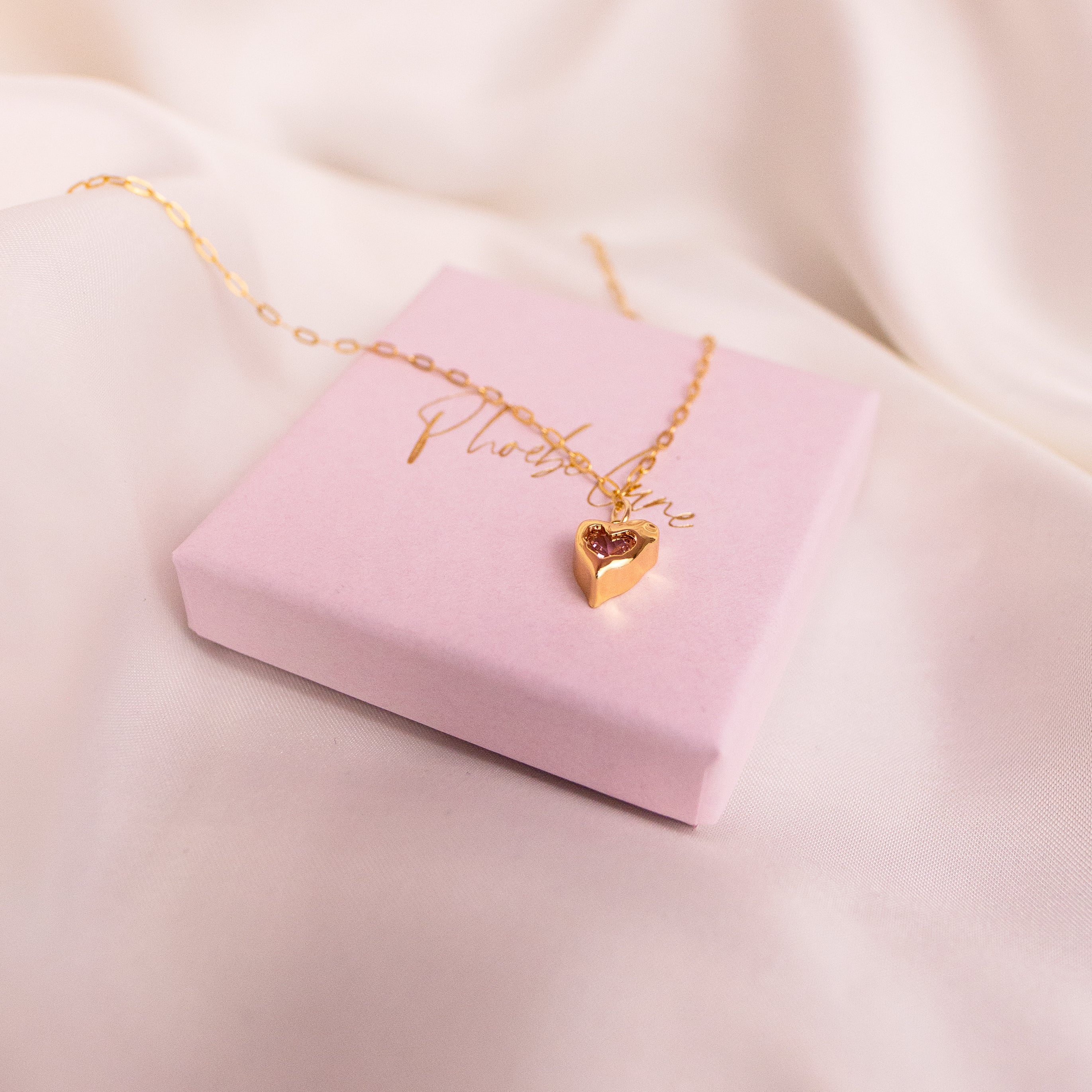 All pieces arrive in a Phoebe Lune jewellery box/pouch, safely secured by our baby pink tissue paper and dusted with rose, cornflour and lavender petals.