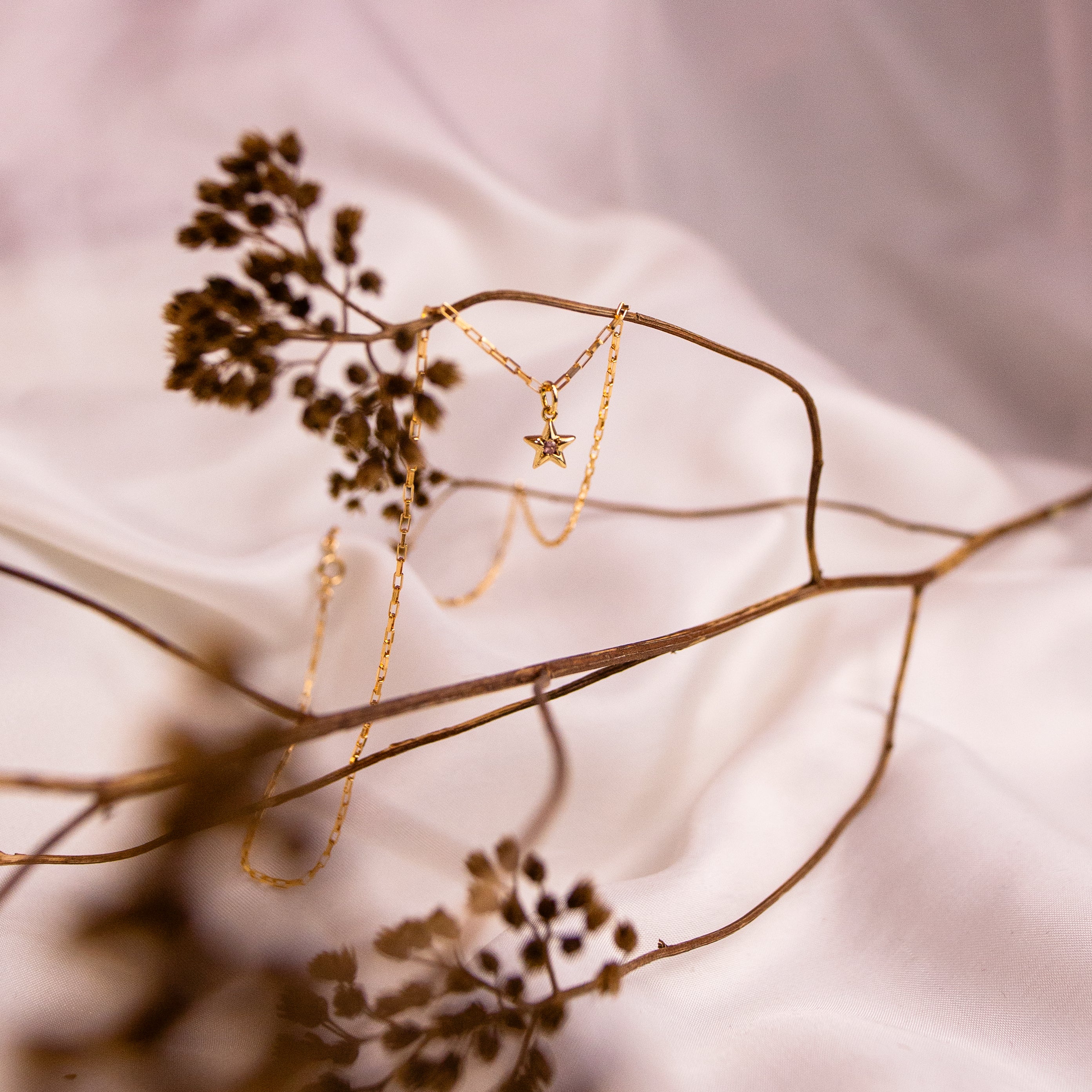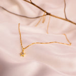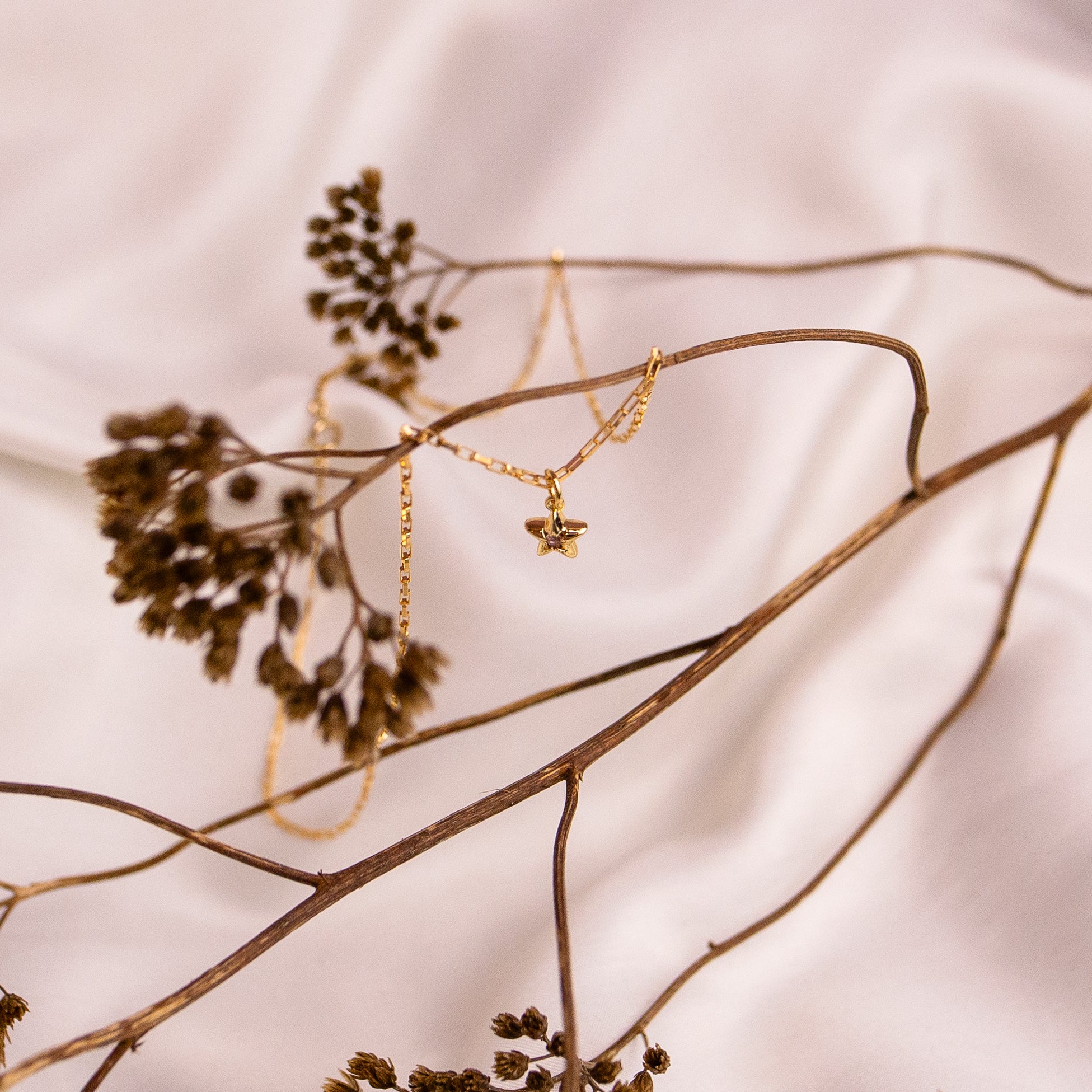 Along a dainty Gold Filled box link chain sits the golden, sparkling lilac Mystic star from our Charmed series. This charm aims to enhance luck and manifestation whilst attracting positive energy.
