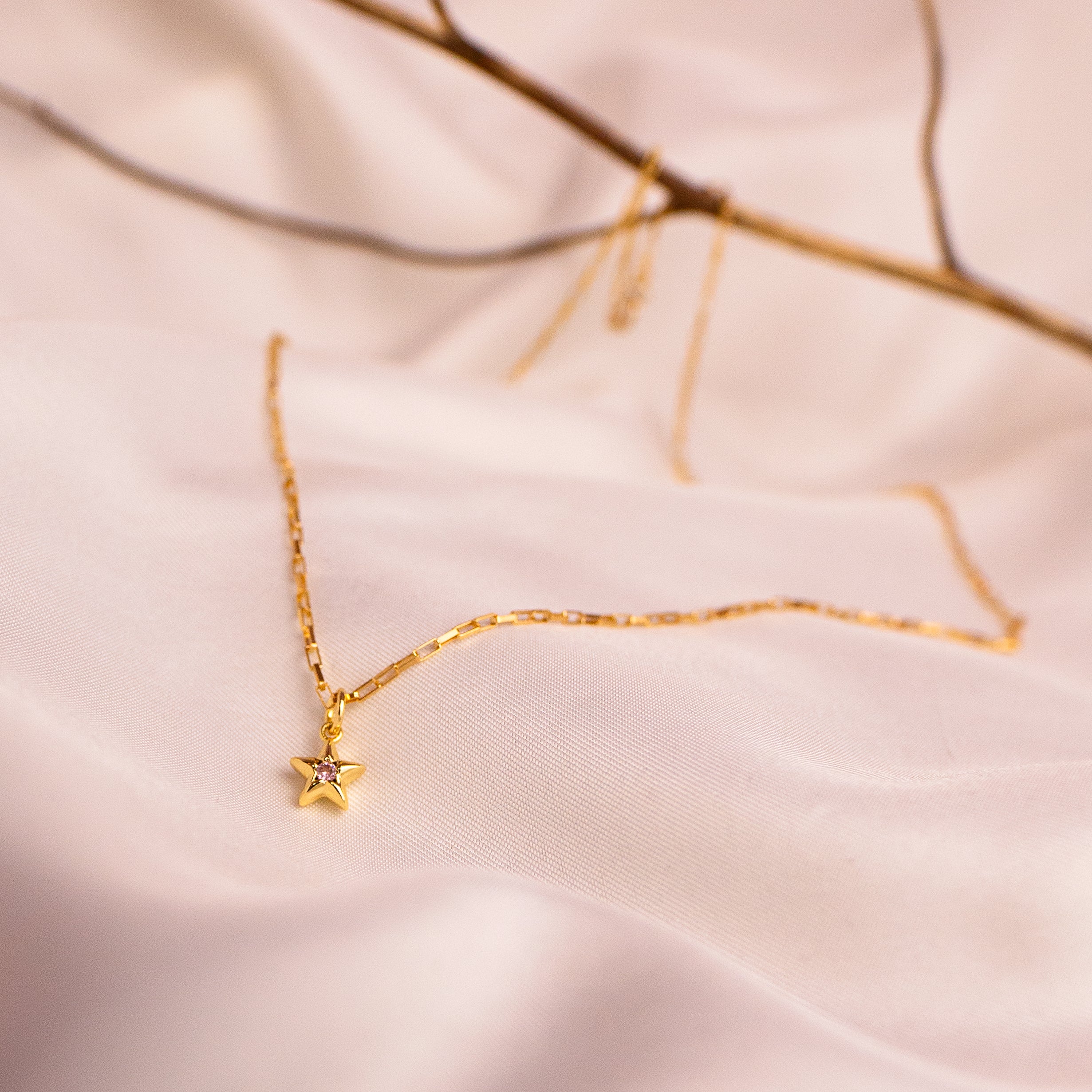 Make a wish with the gold filled Mystic star charm, centred with a sparkling lilac Zircon.