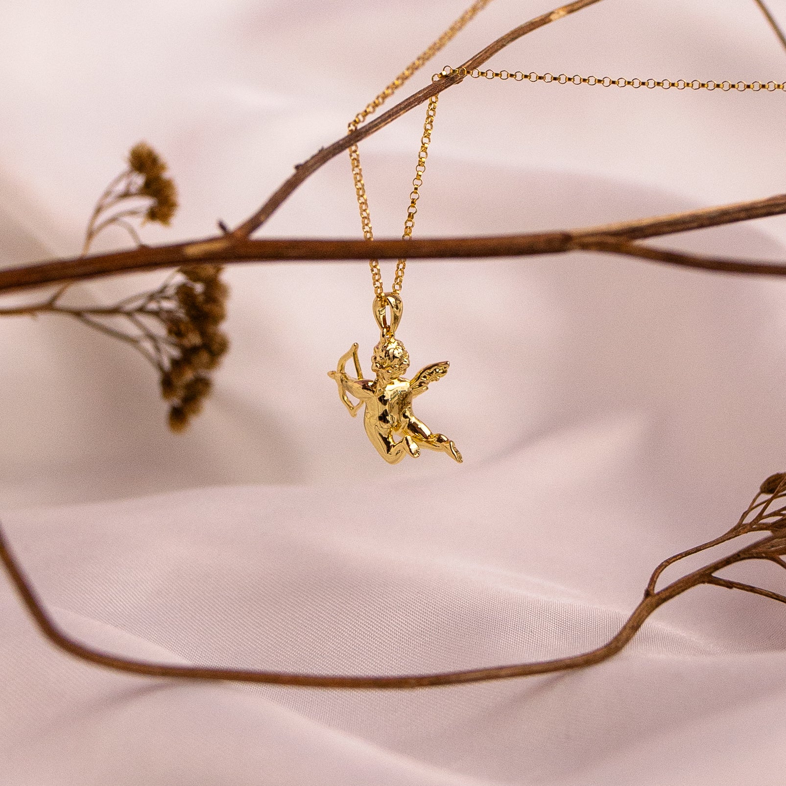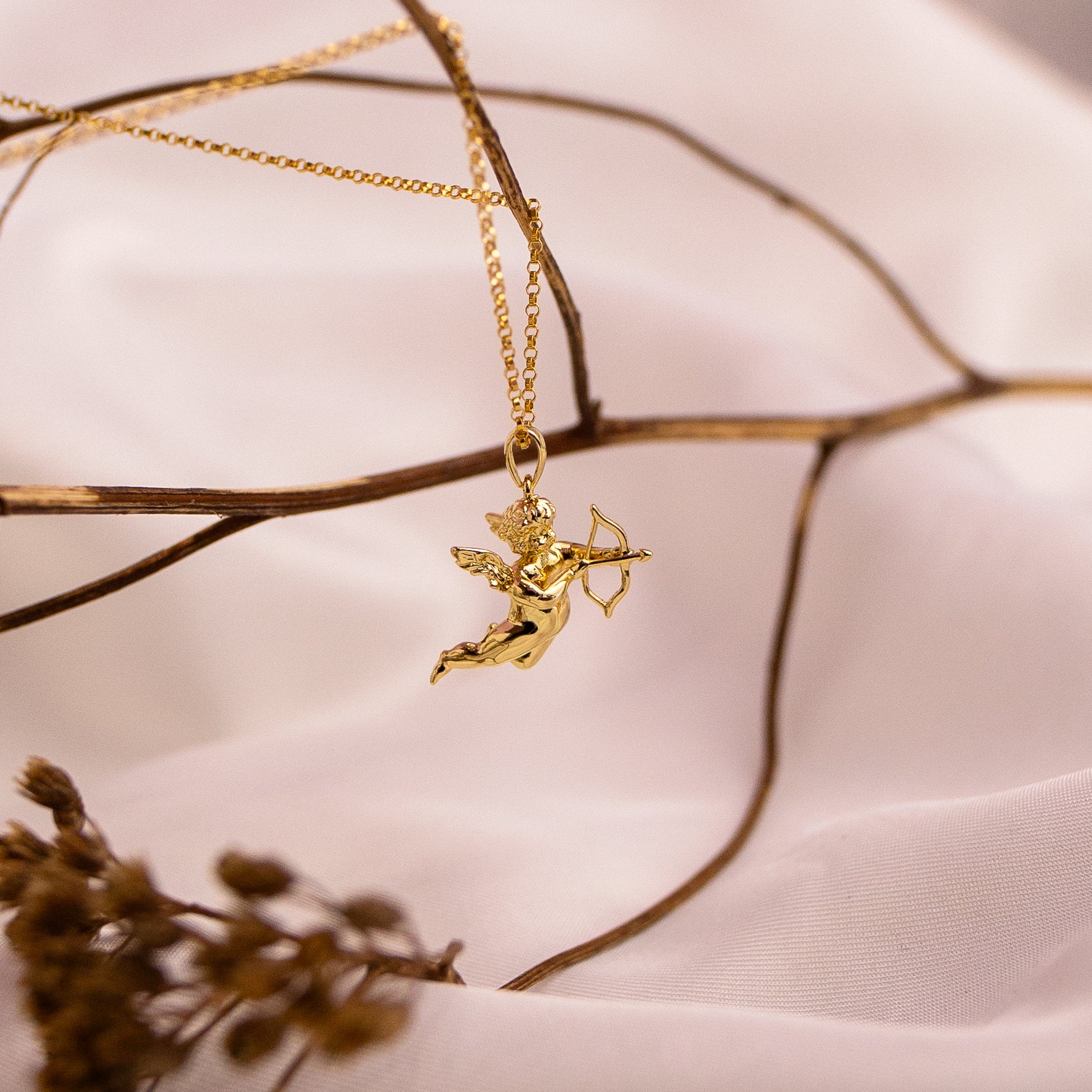 Suspended from a dainty 18" Gold Filled Rolo chain, The Archer sits poised, facing outwards and ready to strike.