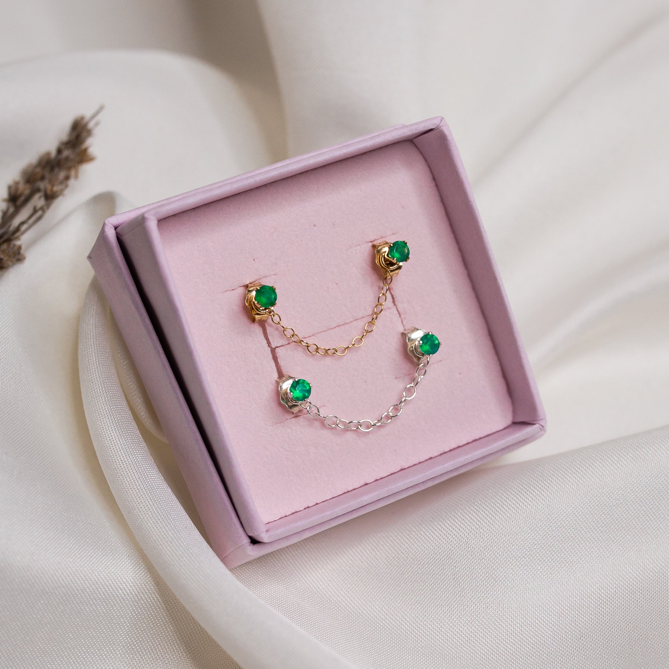 All pieces arrive in a Phoebe Lune jewellery box/pouch, safely secured by our baby pink tissue paper and dusted with rose, cornflour and lavender petals.