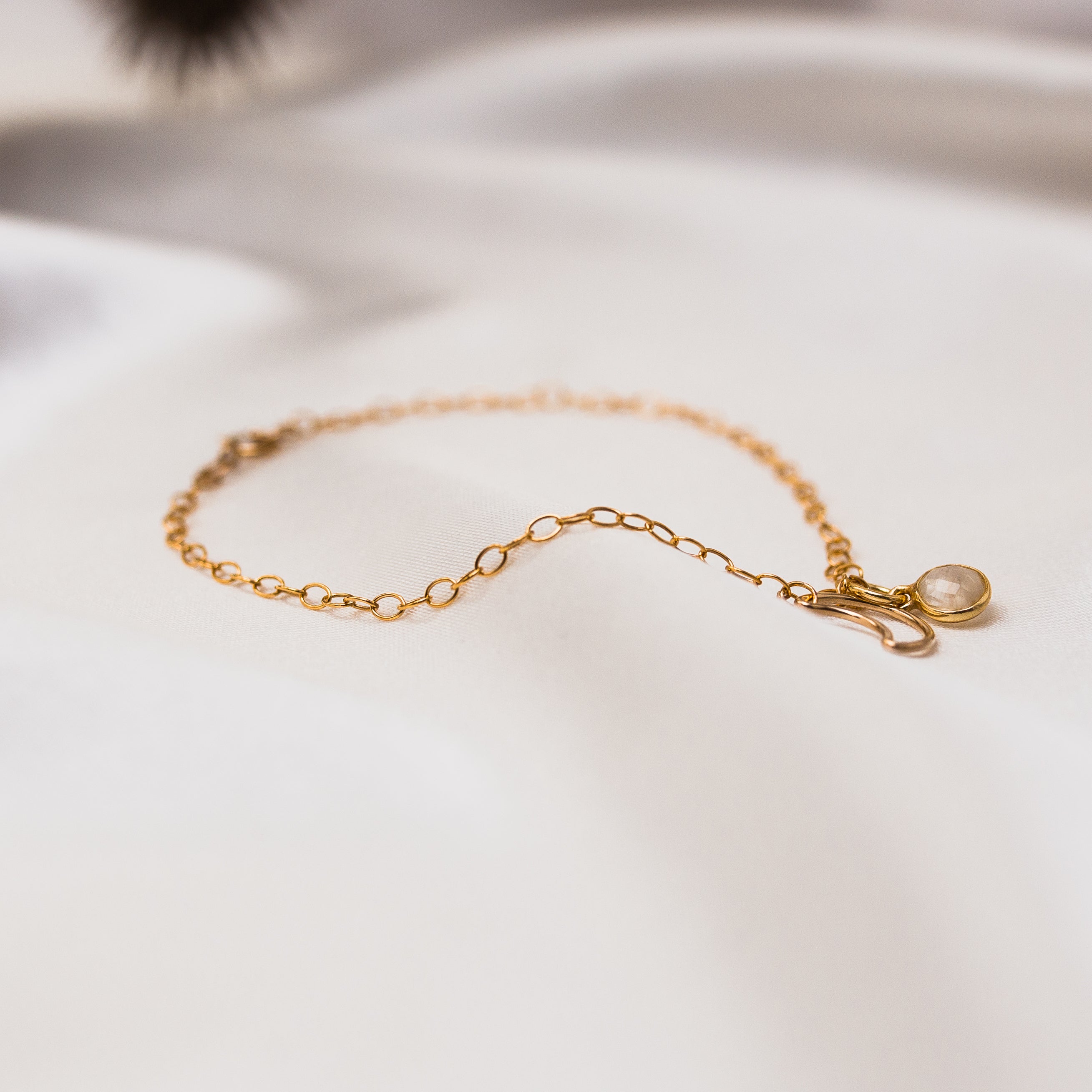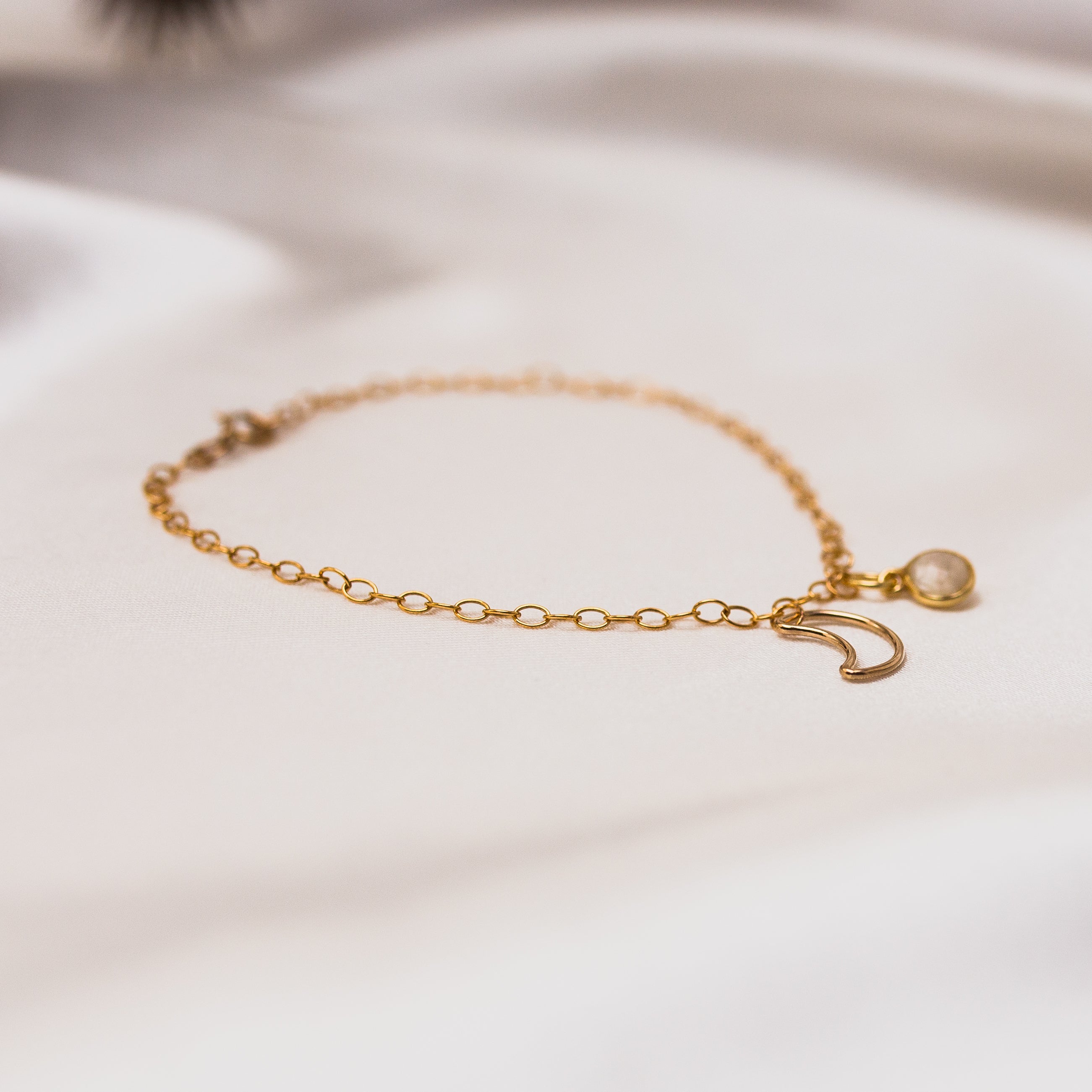 Crafted using a dainty gold filled cable chain, the Crescent bracelet provides the power of inner growth and strength.