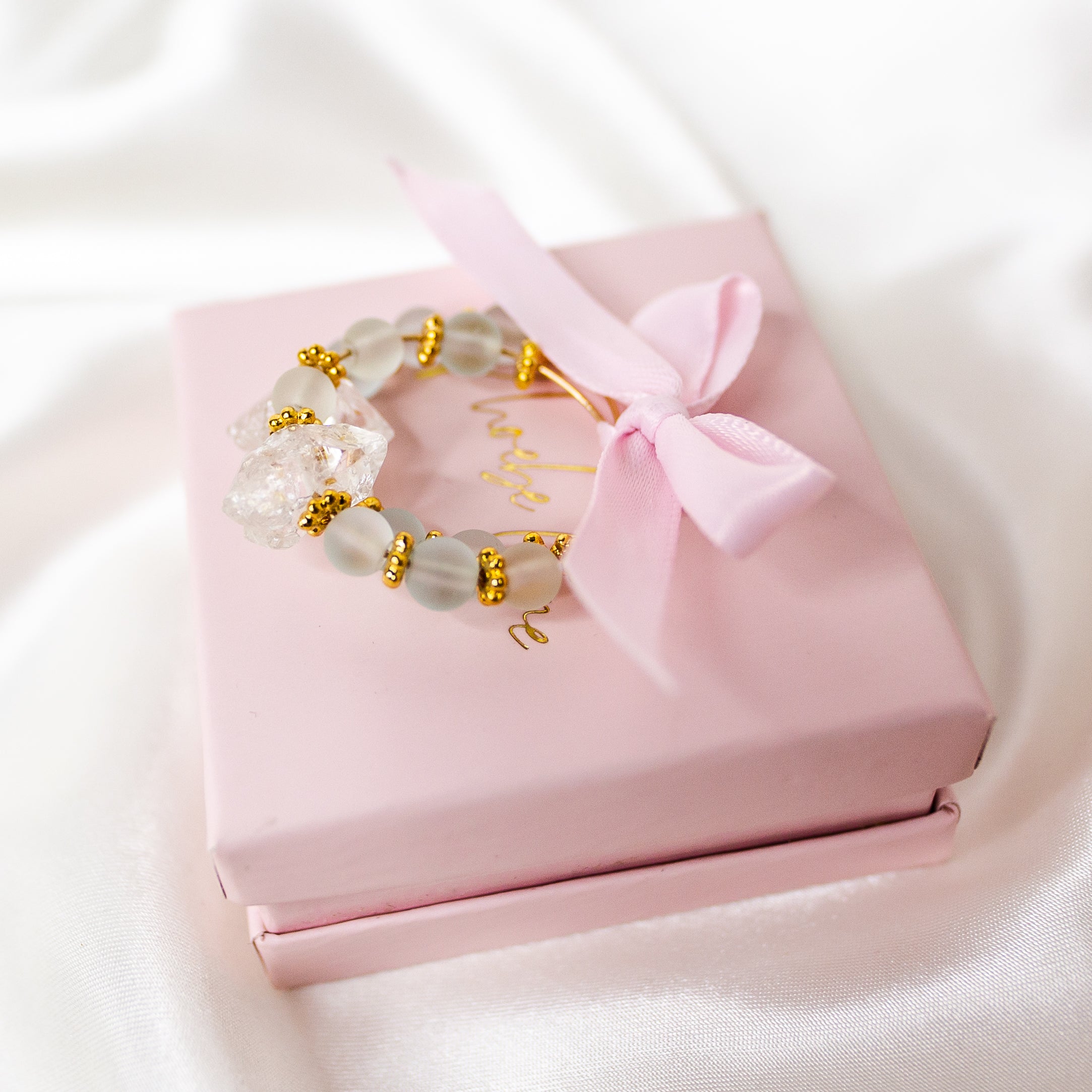 Herkimer Diamonds are one of the most precious forms of Quartz. Radiating high frequency vibrations, they become strong manifestation tools and enhance the powers of the wearer.