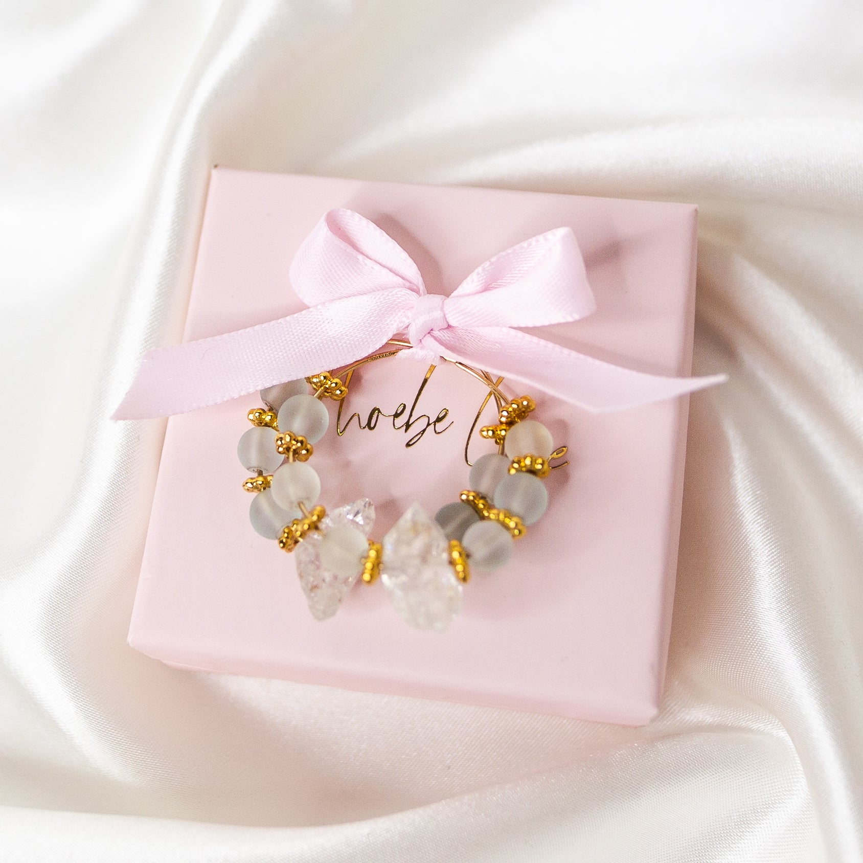 All pieces arrive in a Phoebe Lune jewellery box/pouch, safely secured by our baby pink tissue paper and dusted with rose, cornflour and lavender petals.