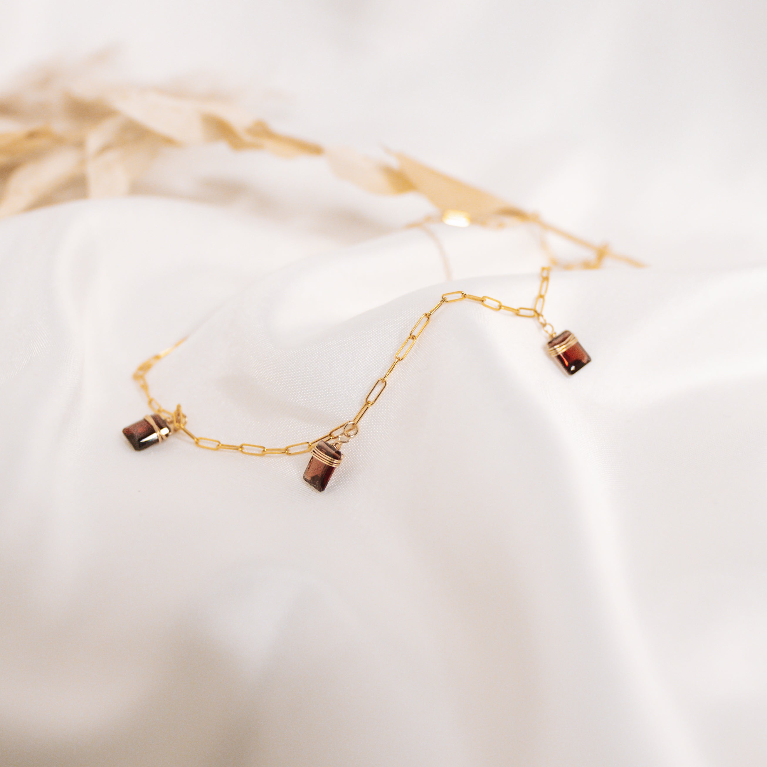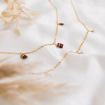 Dusted with hand wrapped, deep red Garnet, pair the link chain necklace with the Garnet gold filled Lilibet hooks for an elegant, timeless set.