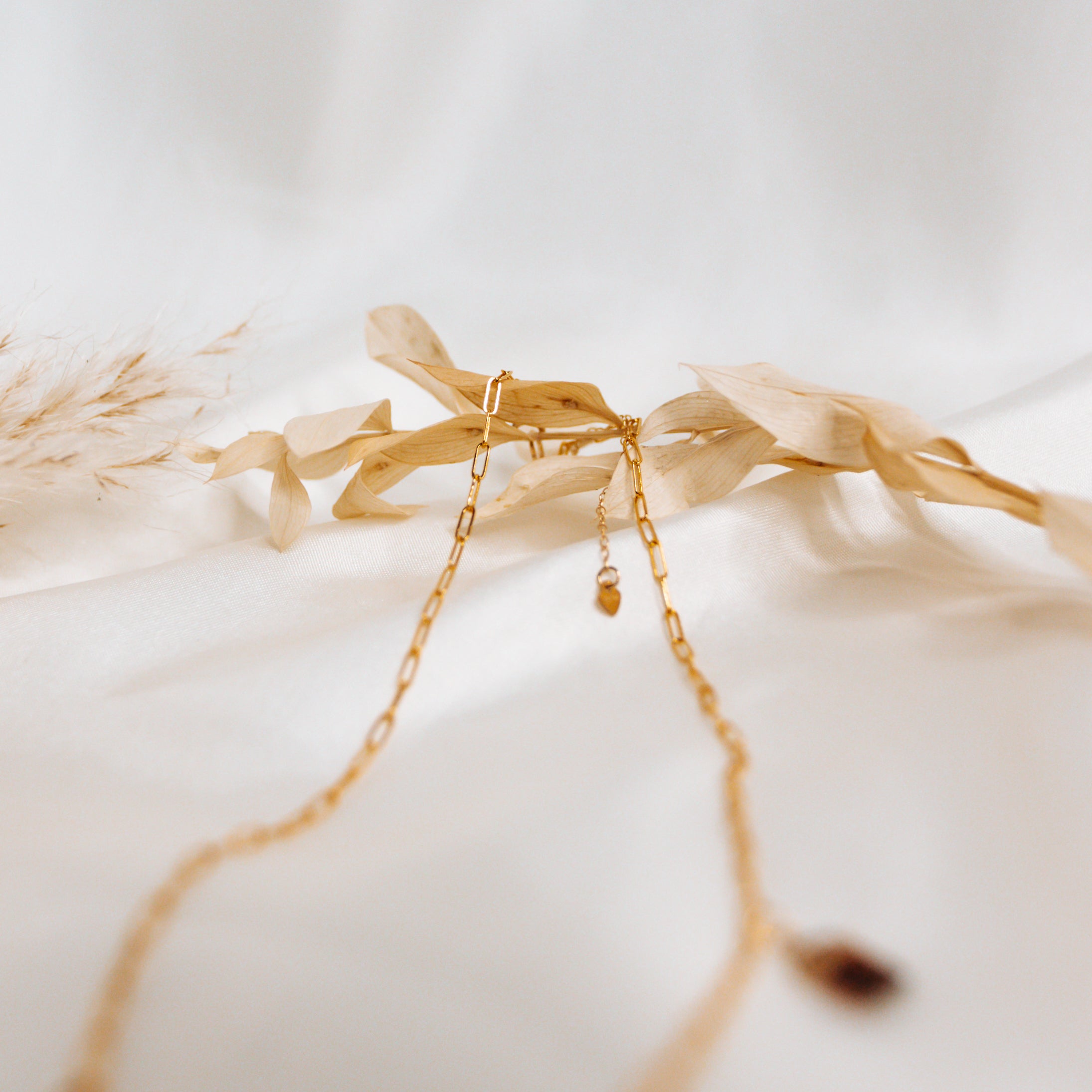 Designed to sit along the collarbone, the gold filled chain link necklace measures 14" - 16" with the extender cable and is finished with a mini gold filled heart.
