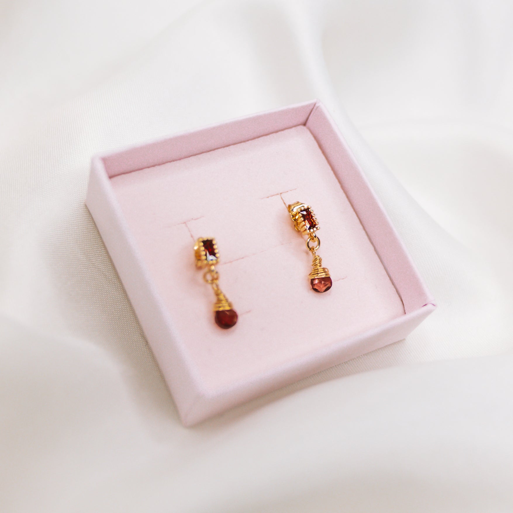 With their small Garnet droplets, the regal studs can be worn in multiple ways. Wear along the lobe on its own, as part of a stacking set or as a helix statement piece.