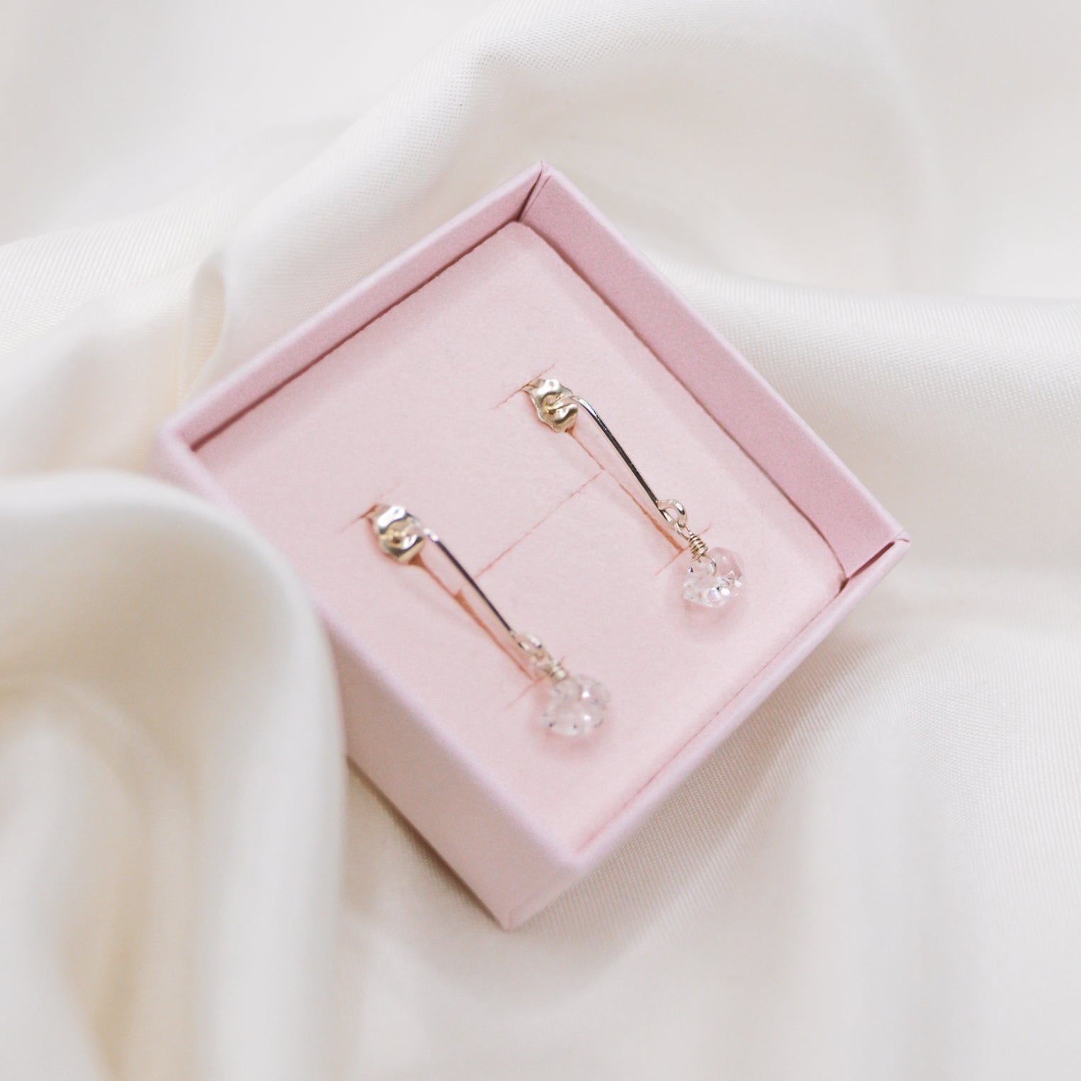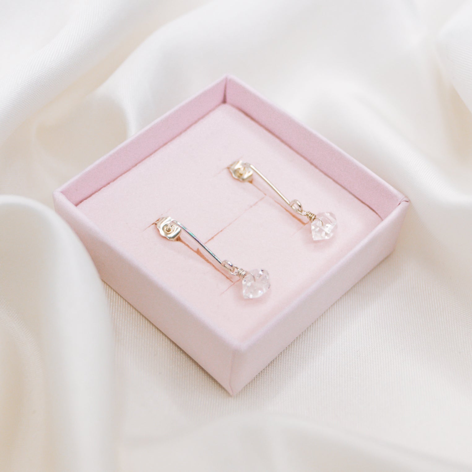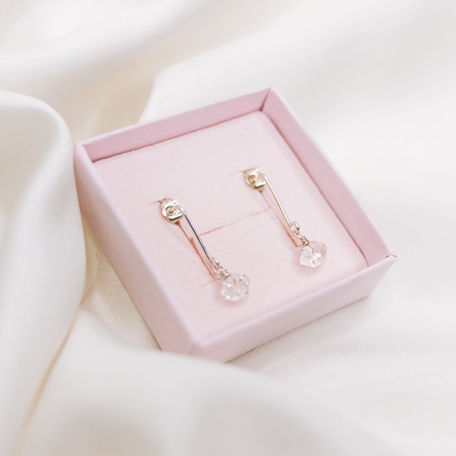 The classic Emaline Studs in sterling silver with ethically sourced, Herkimer Diamond.