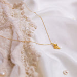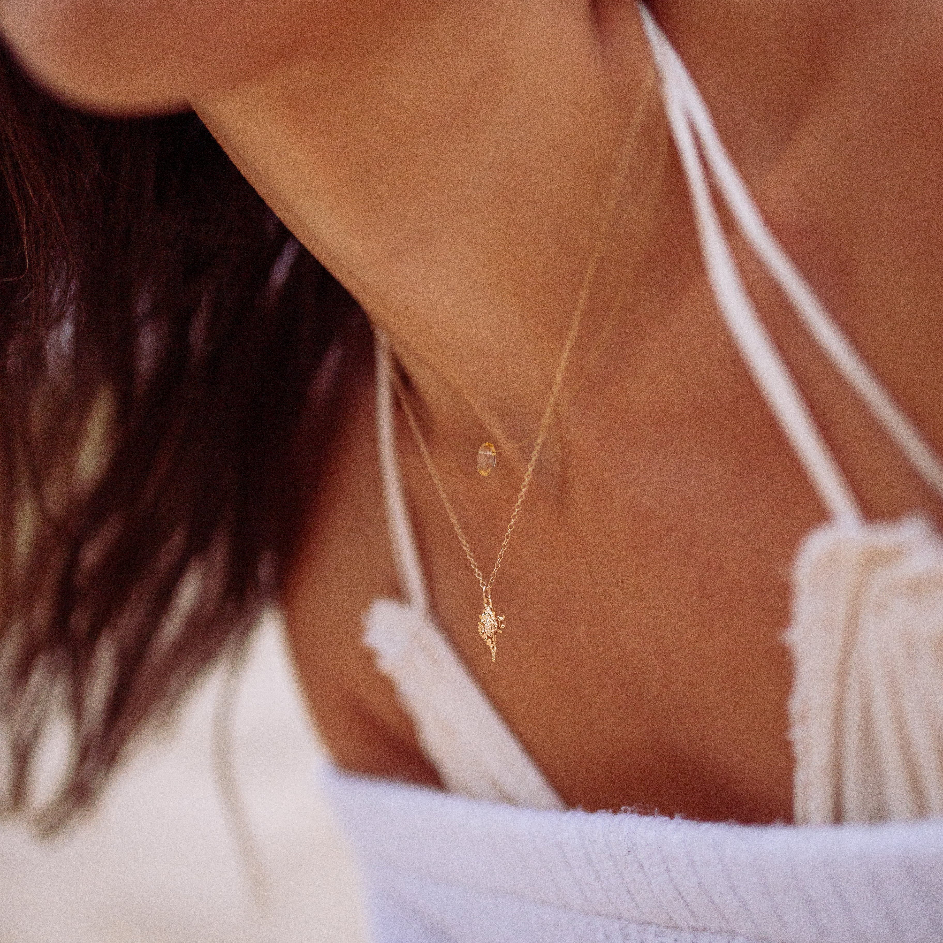Gold filled 18" necklace adorned with a dainty golden conch and finished with gold filled clasps.