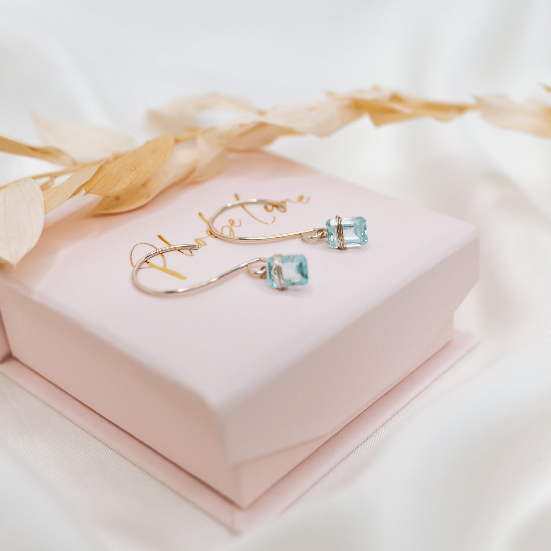The classic Lilibet hooks in sterling silver with ethically sourced, hand cut Aquamarine.