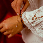 This bracelet can be worn in any way, with the droplet feature at the back, side or resting along the front of the hand. The length of the cascading drop will vary depending on how tight/loose the bracelet is worn.