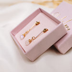 With their structured drop, the Emaline studs can be worn in multiple ways. Wear along the lobe on its own, as a stacking set or as a helix statement piece.