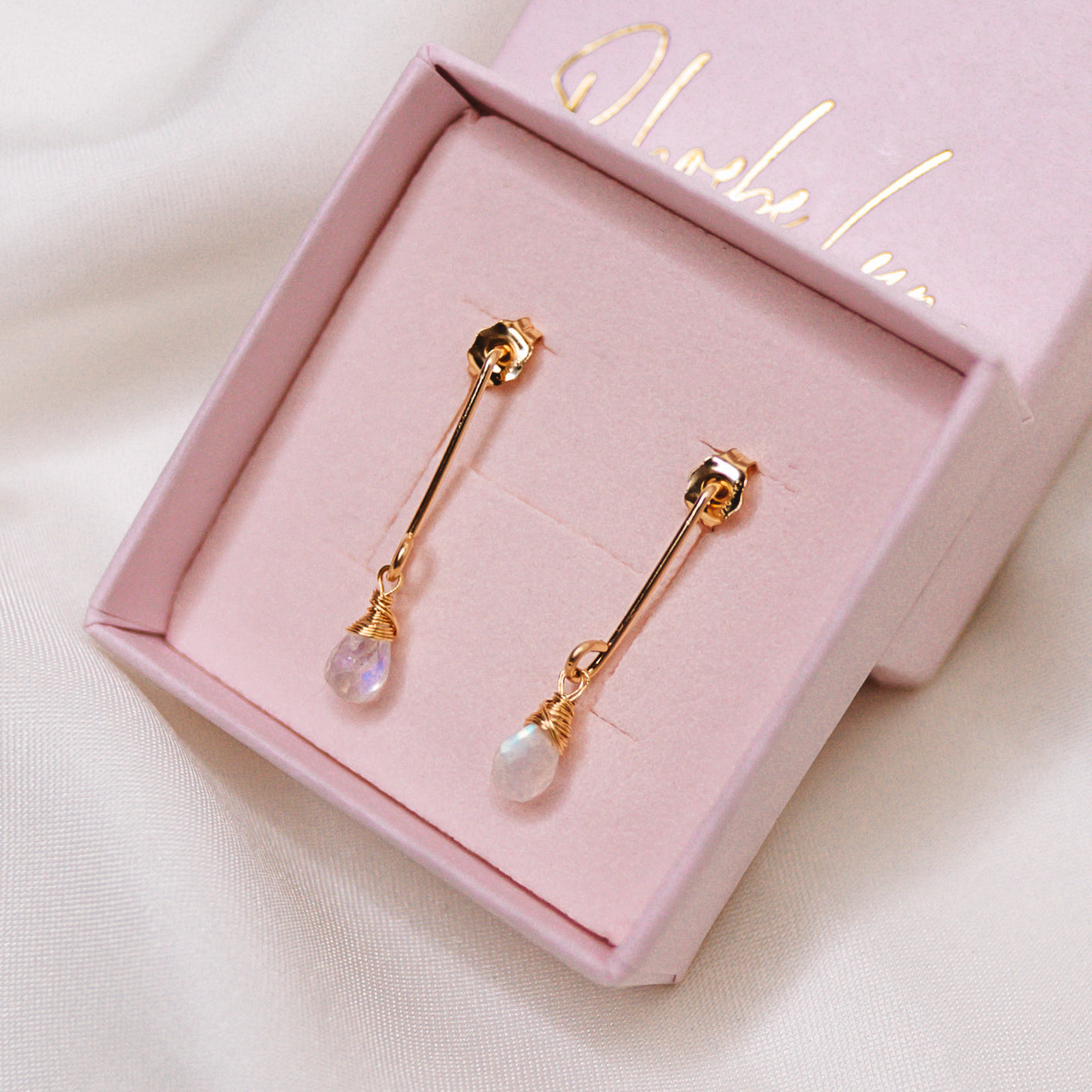 The classic Emaline Studs in gold fill with ethically sourced, hand cut Moonstone.