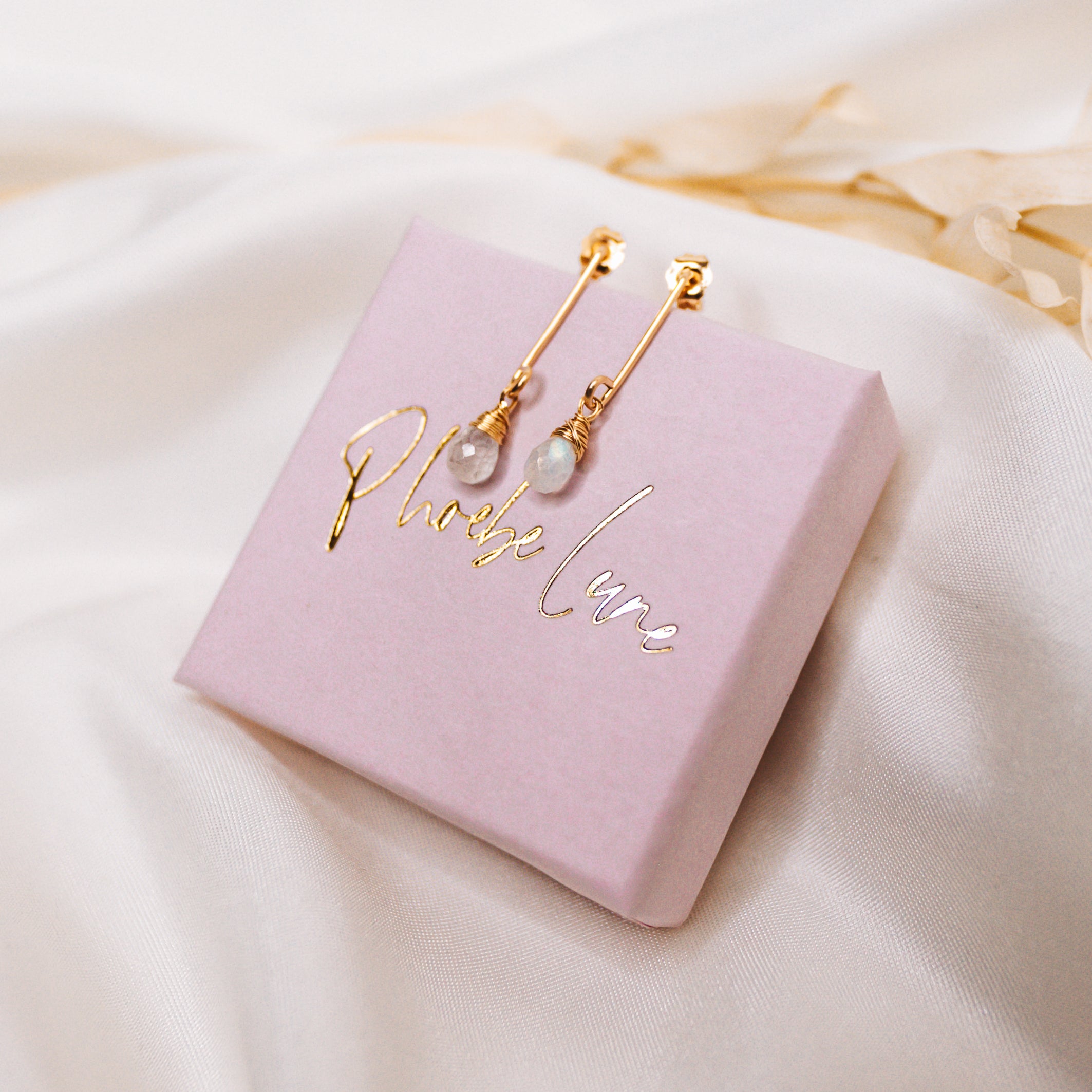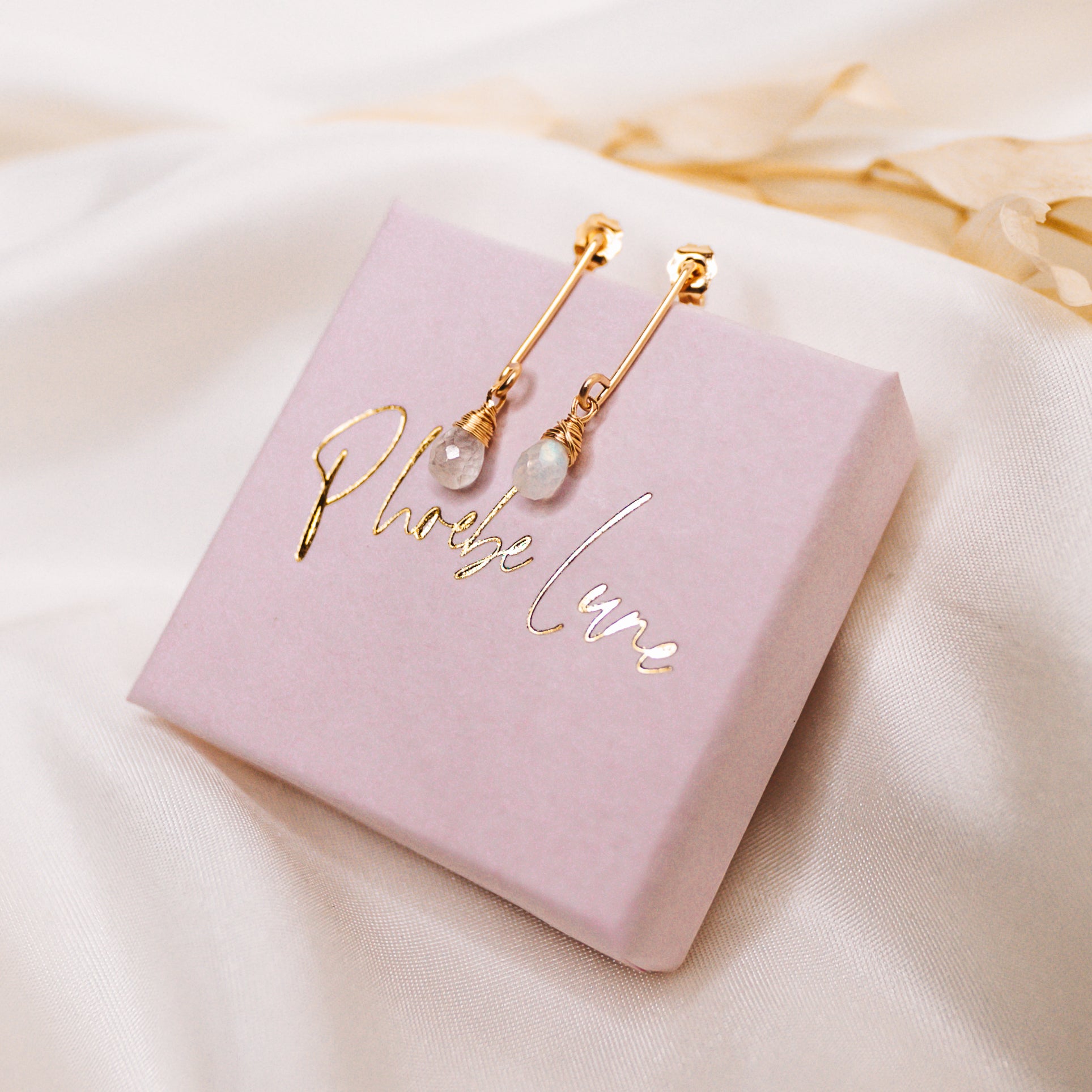 All pieces arrive in a Phoebe Lune jewellery box/pouch, safely secured by our baby pink tissue paper and dusted with rose, cornflour and lavender petals.