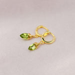 These mini huggies are finished with a Peridot marquise that has been hand wrapped in gold filled wire.