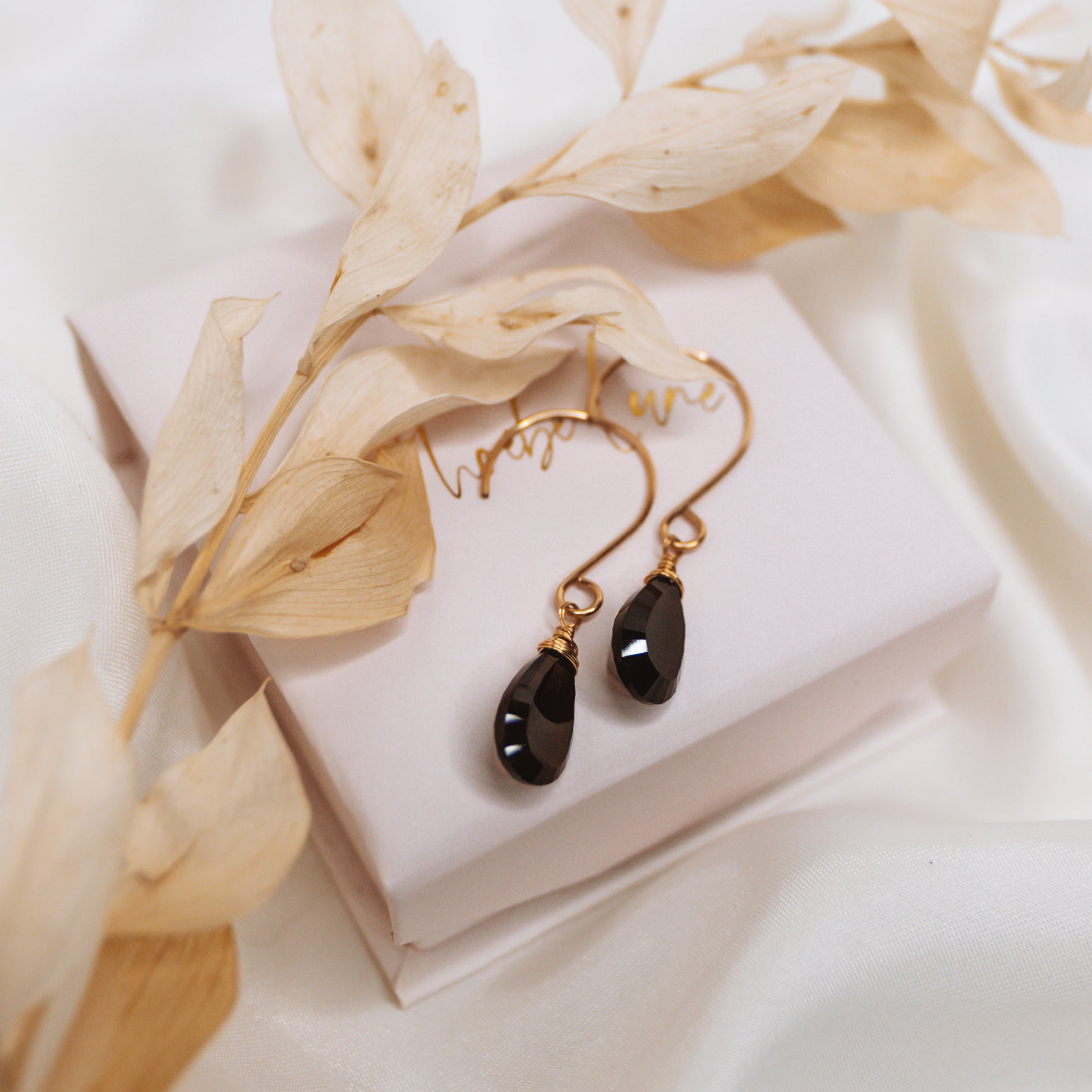 The classic Lilibet hooks in gold fill with ethically sourced, hand cut Smoky Quartz.