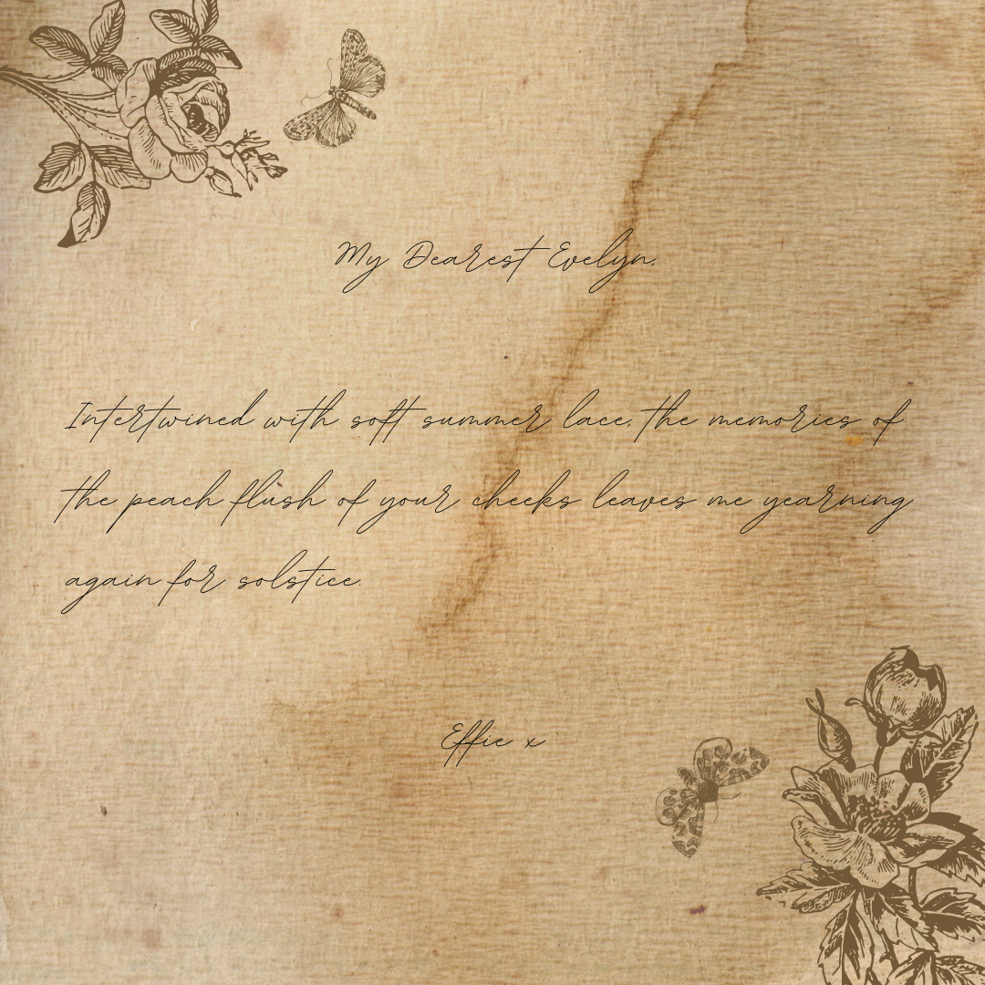 Intertwined with soft summer lace, the memories of the peach flush of your cheeks leaves me yearning again for solstice.