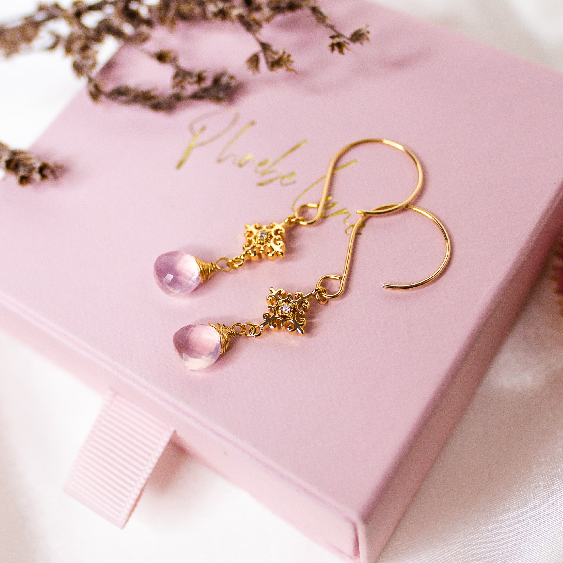 All pieces arrive in a Phoebe Lune jewellery box/pouch, safely secured by our baby pink tissue paper and dusted with rose, cornflour and lavender petals.