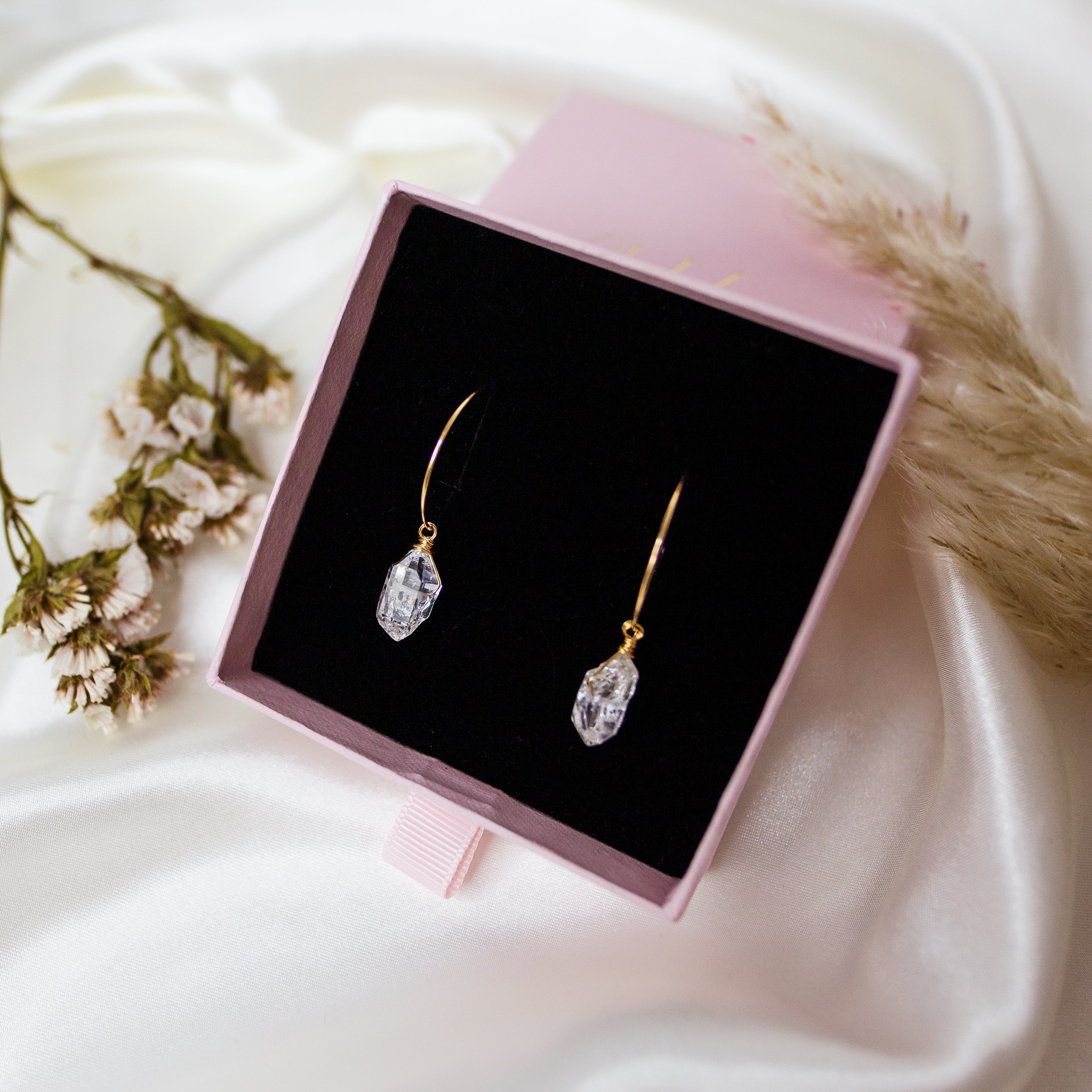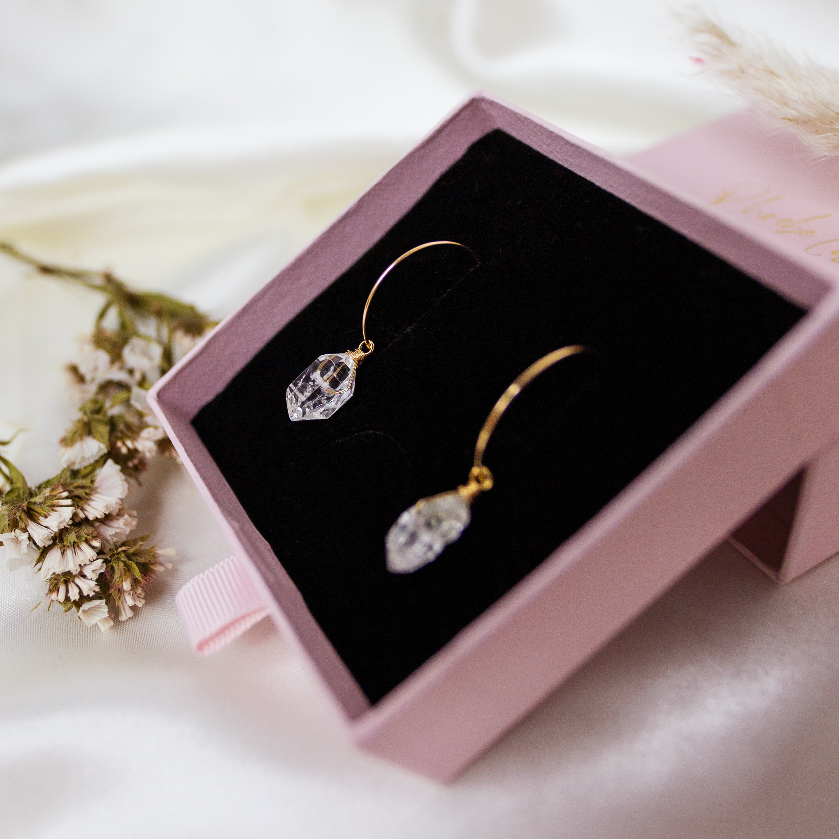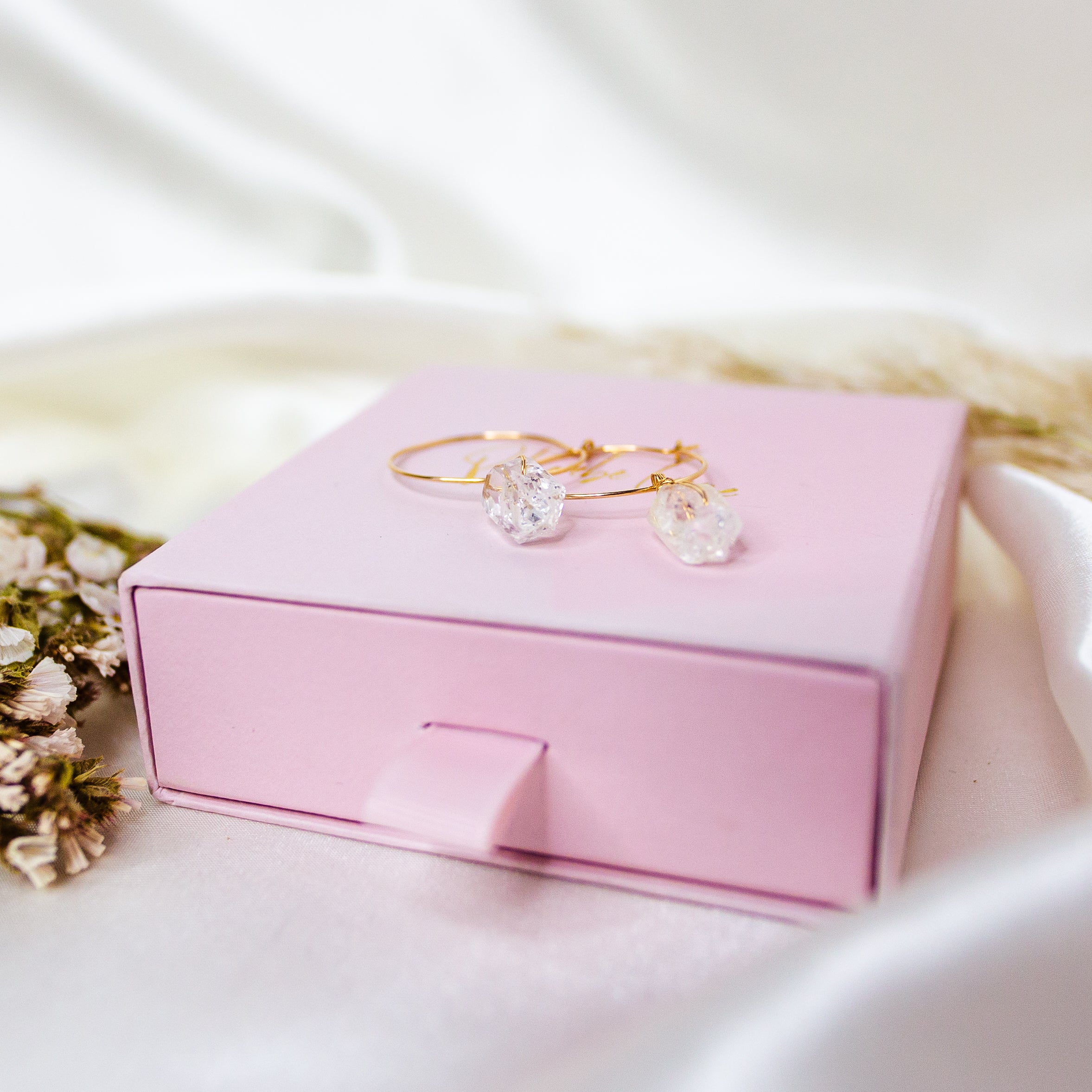 All pieces arrive in a Phoebe Lune jewellery box/pouch, safely secured by our baby pink tissue paper and dusted with rose, cornflour and lavender petals.