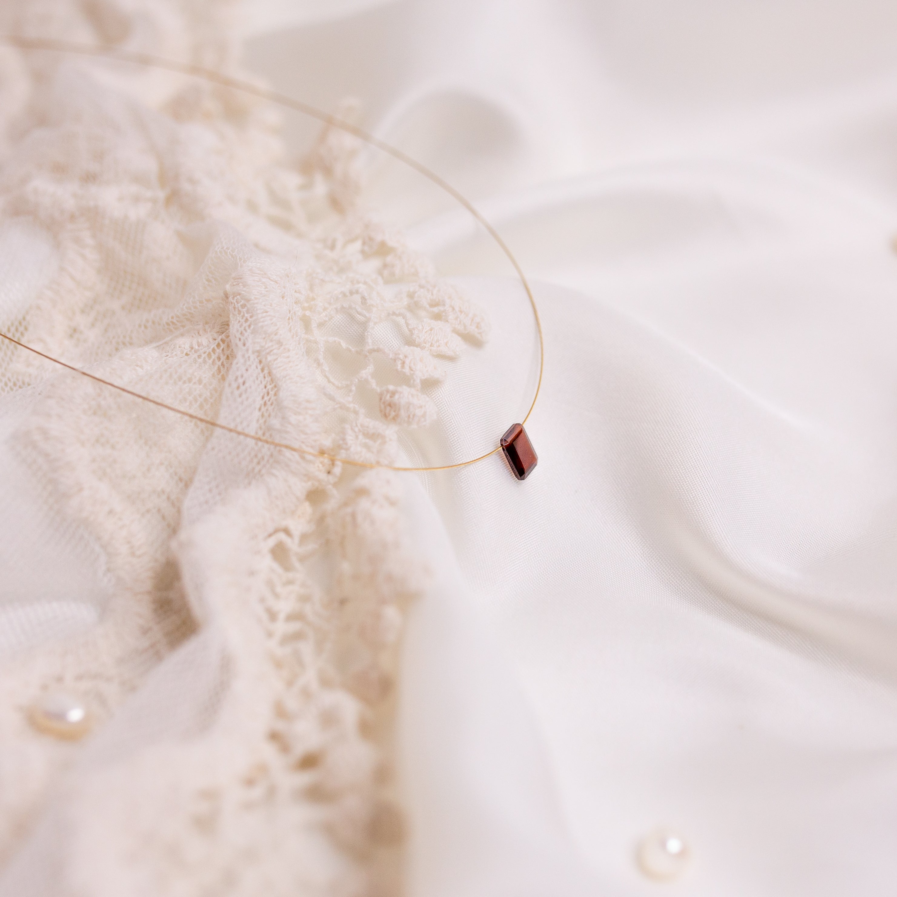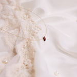The gold plated strong and dainty stainless steel wire holds a lightly structured shape to keep your crystal sat safely atop the base of your neck, all finished with gold filled clasps and connectors.