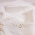 The gold plated strong and dainty stainless steel wire holds a lightly structured shape to keep your crystal sat safely atop the base of your neck, all finished with gold filled clasps and connectors.