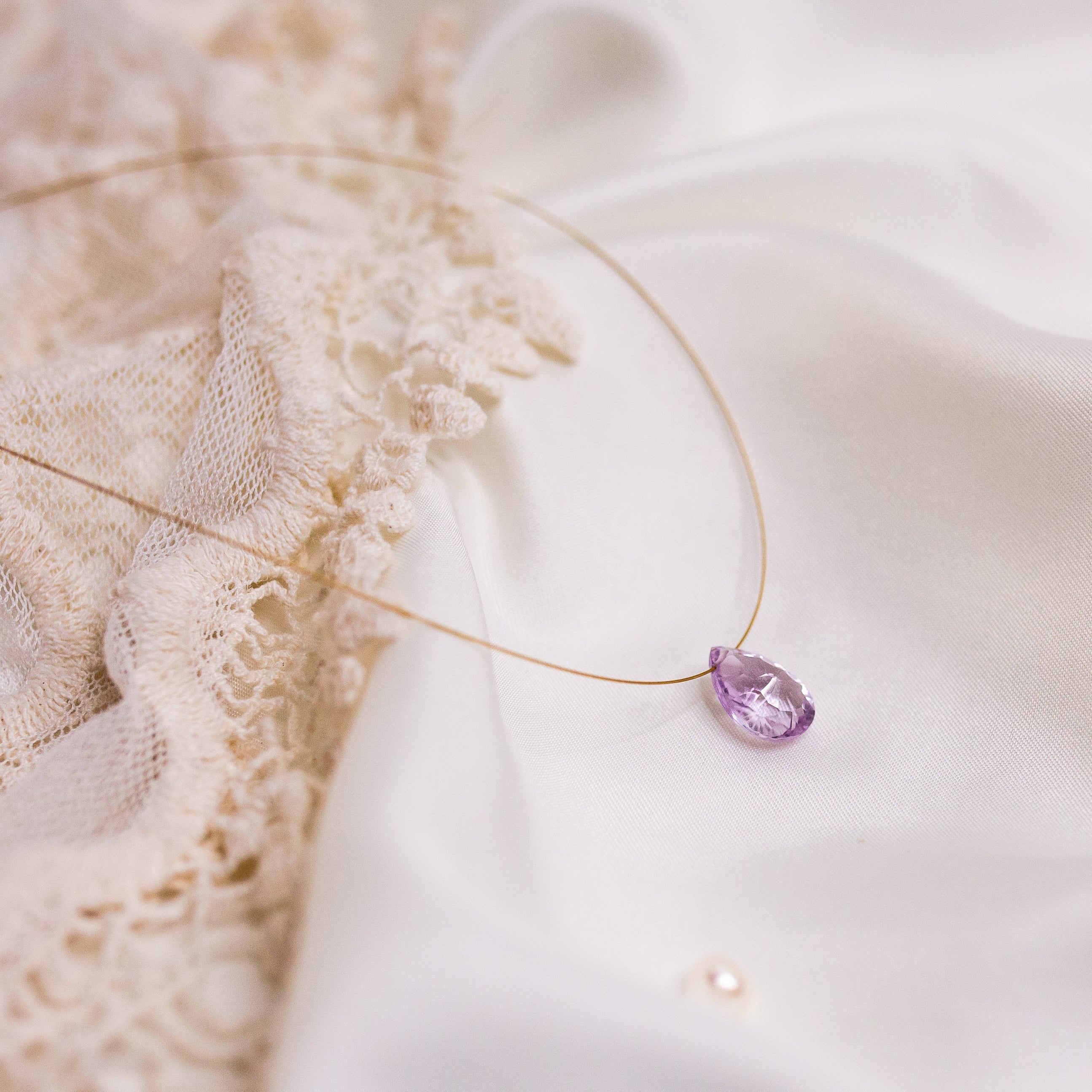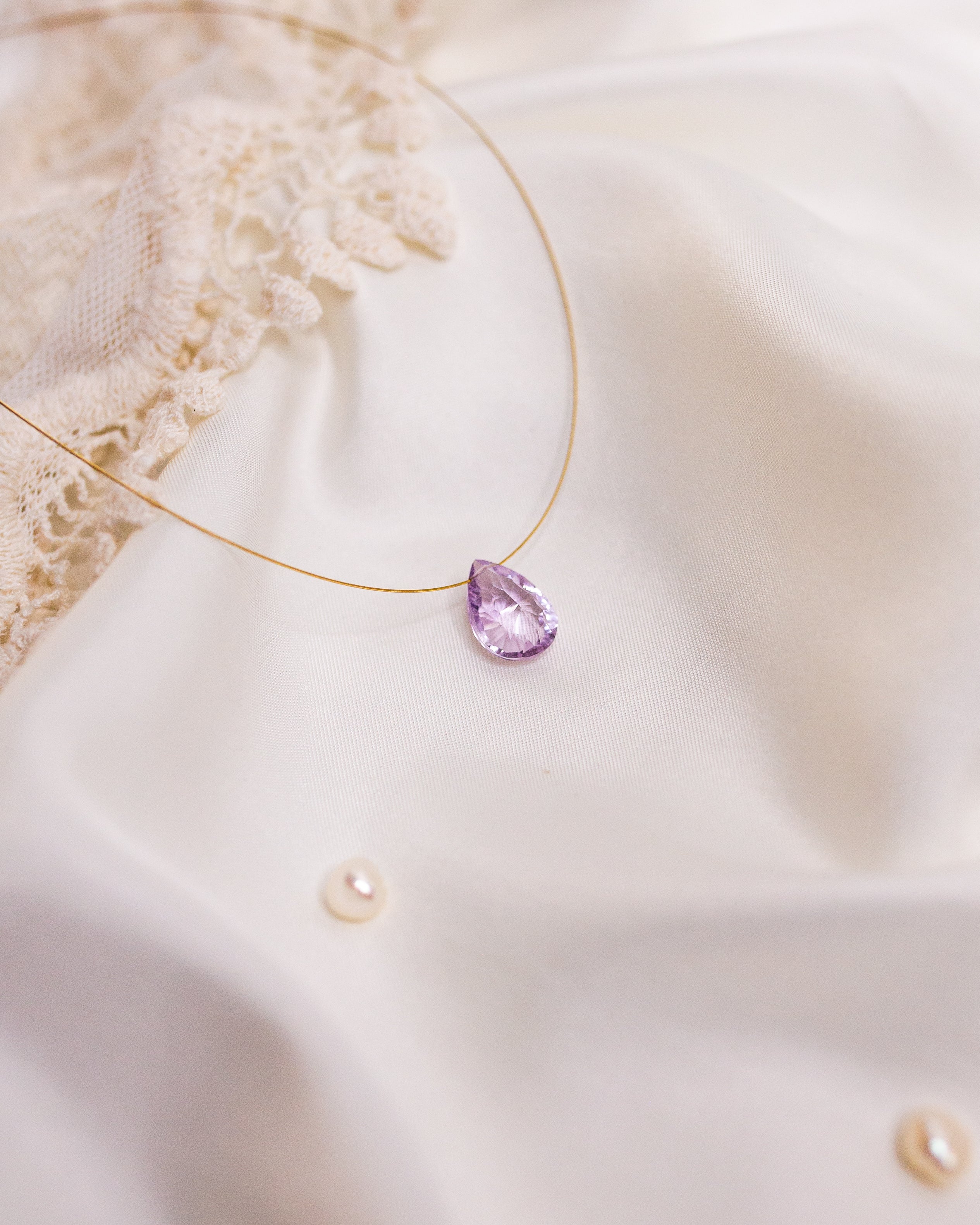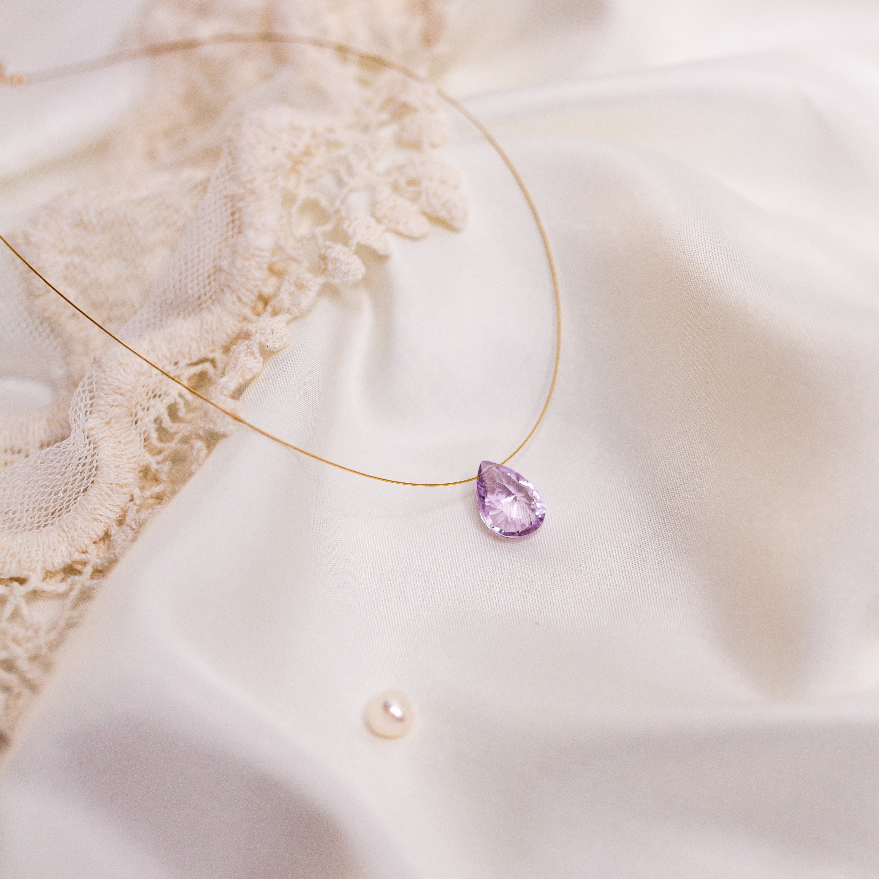 The Floating Crystal Necklace: Pink Amethyst Teardrop