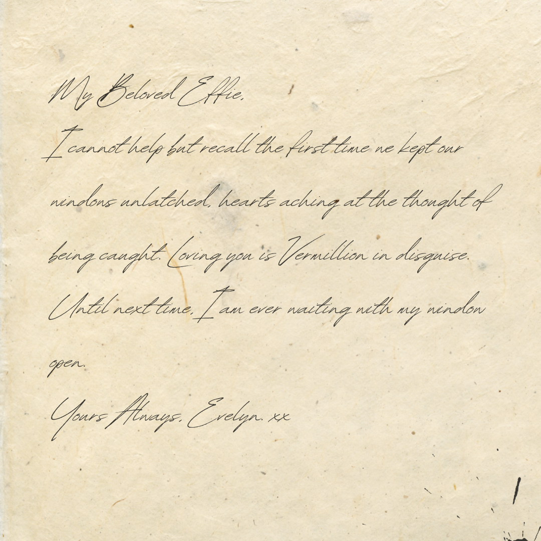 I cannot help but recall the first time we kept our windows unlatched, heart aching at the thought of being caught. Loving you is Vermillion in disguise. Until next time, I am ever waiting with my window open.